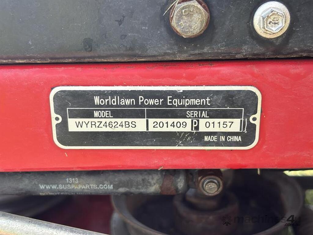 2014 WORLDLAWN VIPER ZERO TURN LAWN MOWER, S/N: 01157, HOURS UNKNOWN. LOCATION: BLOOMSBURY, QLD 4799. INSPECTIONS & COLLECTIONS: BY APPOINTMENT ONLY. ENQUIRIES: JOHN MCDOUGALL ON OR JOHNEMERALDAUCTIONCENTRE