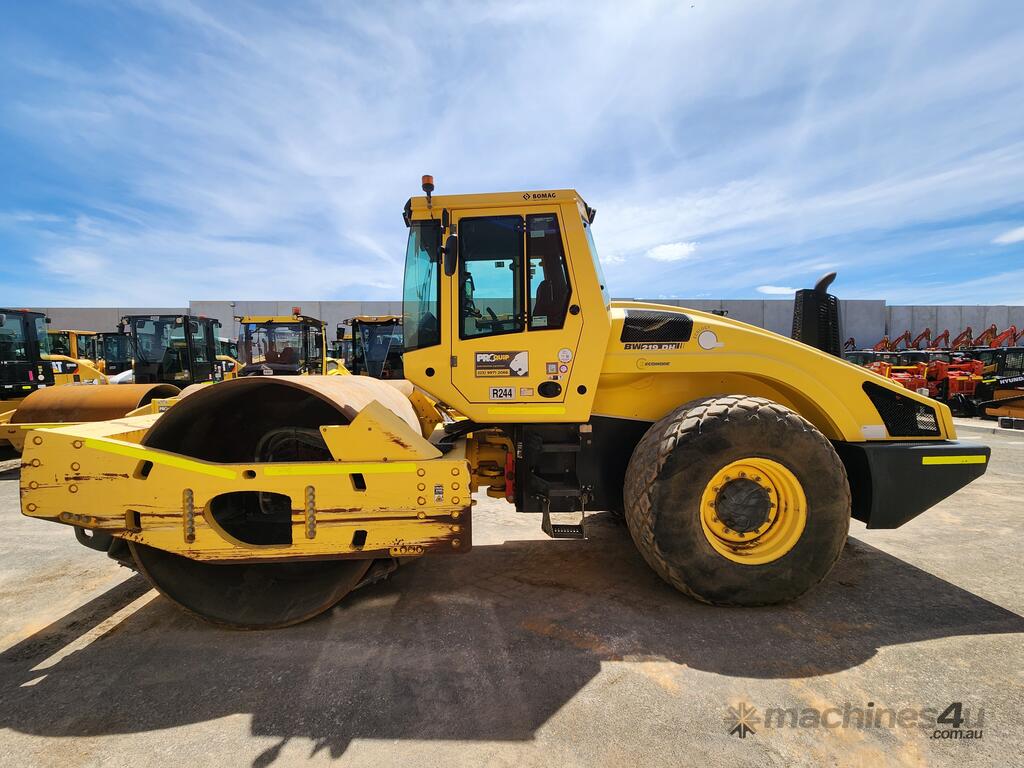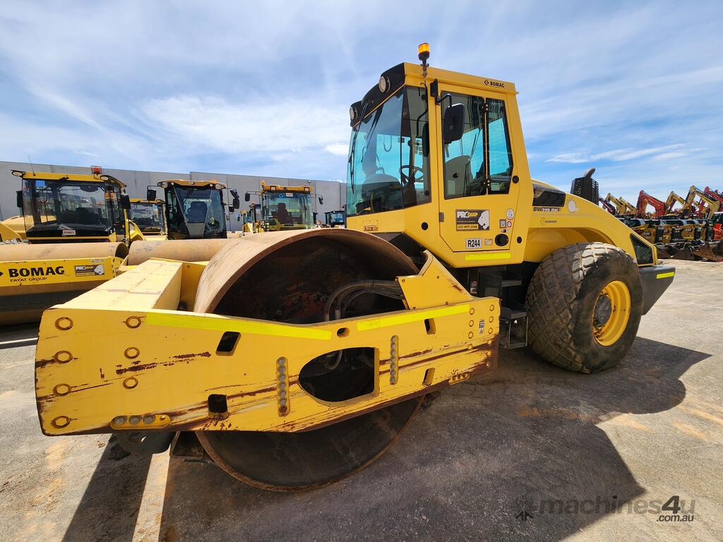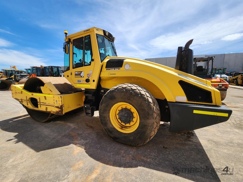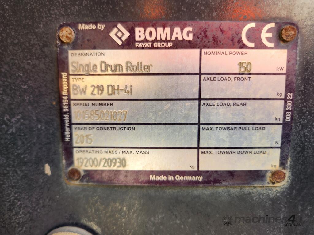USED 2015 BOMAG BW219DH-4 20t SMOOTH DRUM ROLLER WITH FULL A/C CABIN AND 3166 HOURS. FULL SERVICE HISTORY, TIER 1 CIVIL SPEC, REAR VIEW CAMERA, UHF RADIO, E-STOPS, BATTERY ISOLATOR, REVERSING SQUAWKER, DUAL FREQUENCY AND AMPLITUDE VIBRATION SYSTEM, ADJUSTABLE SEAT AND WORK LIGHTS.