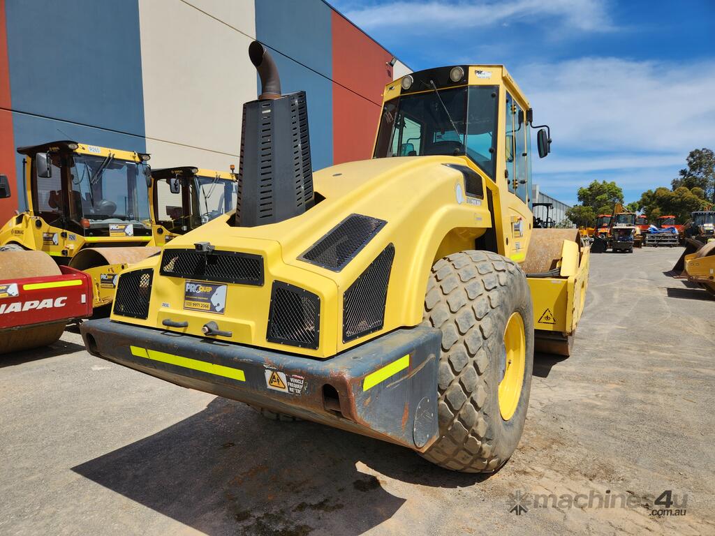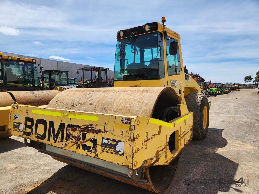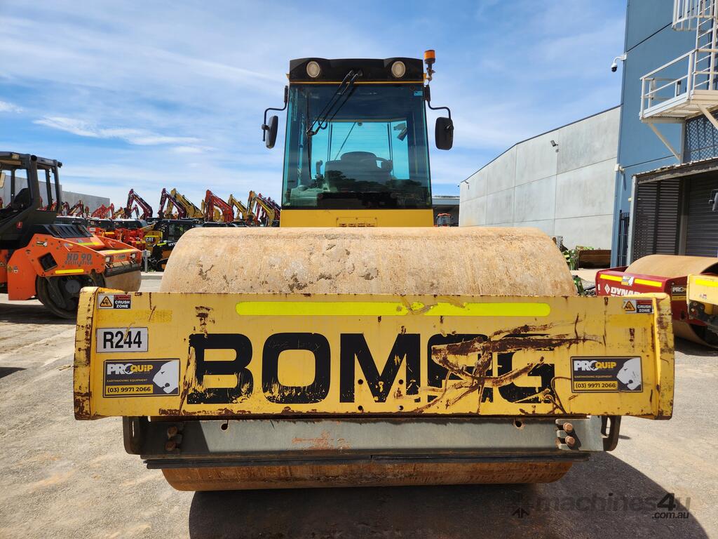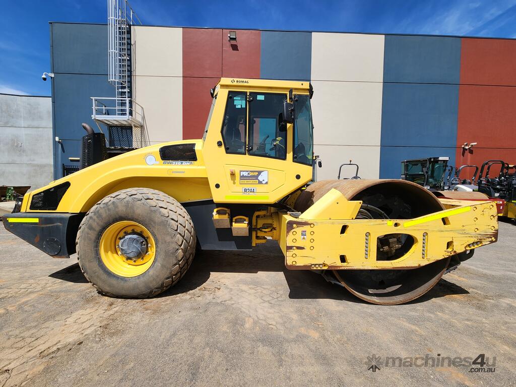 USED 2015 BOMAG BW219DH-4 20t SMOOTH DRUM ROLLER WITH FULL A/C CABIN AND 3166 HOURS. FULL SERVICE HISTORY, TIER 1 CIVIL SPEC, REAR VIEW CAMERA, UHF RADIO, E-STOPS, BATTERY ISOLATOR, REVERSING SQUAWKER, DUAL FREQUENCY AND AMPLITUDE VIBRATION SYSTEM, ADJUSTABLE SEAT AND WORK LIGHTS.