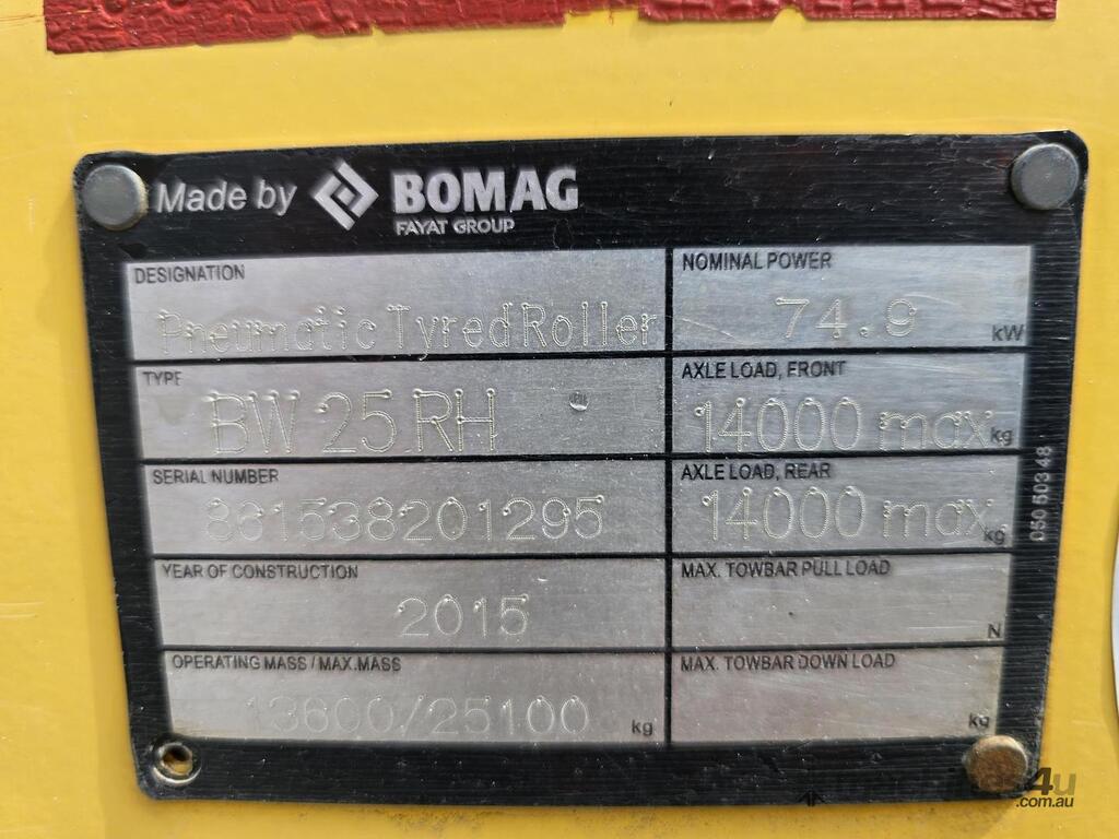 2015 BOMAG BW25RH Multi Tyre Roller :      $69,000 AUD($75,900 Inc. GST)