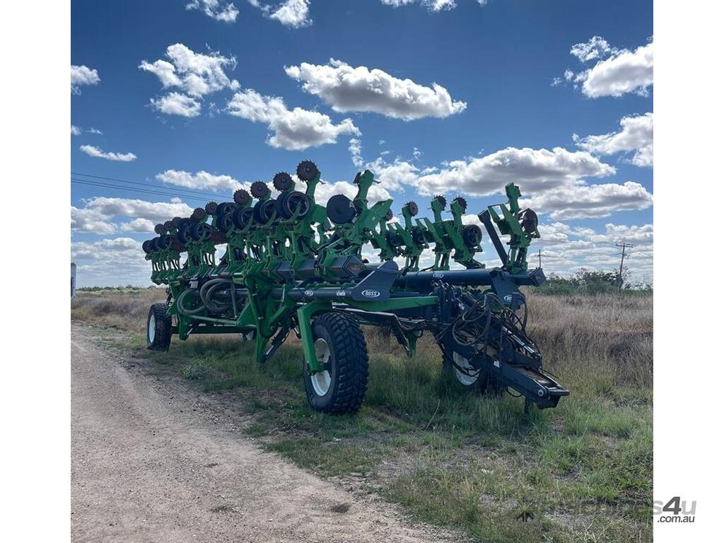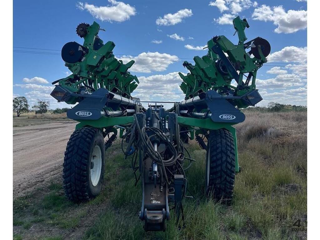2015 BOSS AGRICULTURE 24 METRE PRECISION PLANTER. Serial no. BA000300. 3 metre centres. Supplied with 1 bushel boxes. However, brackets have been installed to carry the 2 bushel boxes. Boss DX50 precision units. 1 metre spacings. 24 units in total. This machine is running off a Precision Seeding Solutions 20/20 monitor. Air seeder hitch. V-drive units. V-drive harness for either 32 or 24 units. Sorhgum plates and cotton plates. This machine is 2 x 12 metre bars with hydraulic side shift, so it can stay on t