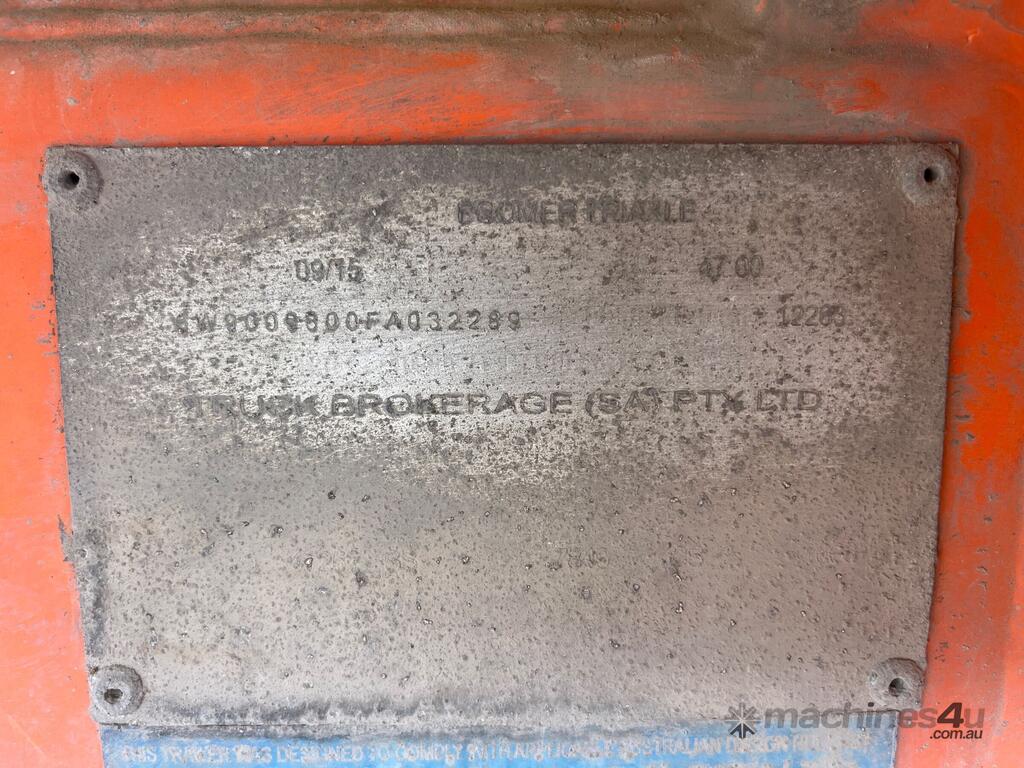CP: 09/2015,Boomer,Tri Axle,Tri Axle Tanker Trailer,Hubometer not visible,Rego. No: SY96FO SA,VIN: 6W9009800FA032289,Sold with No Plates