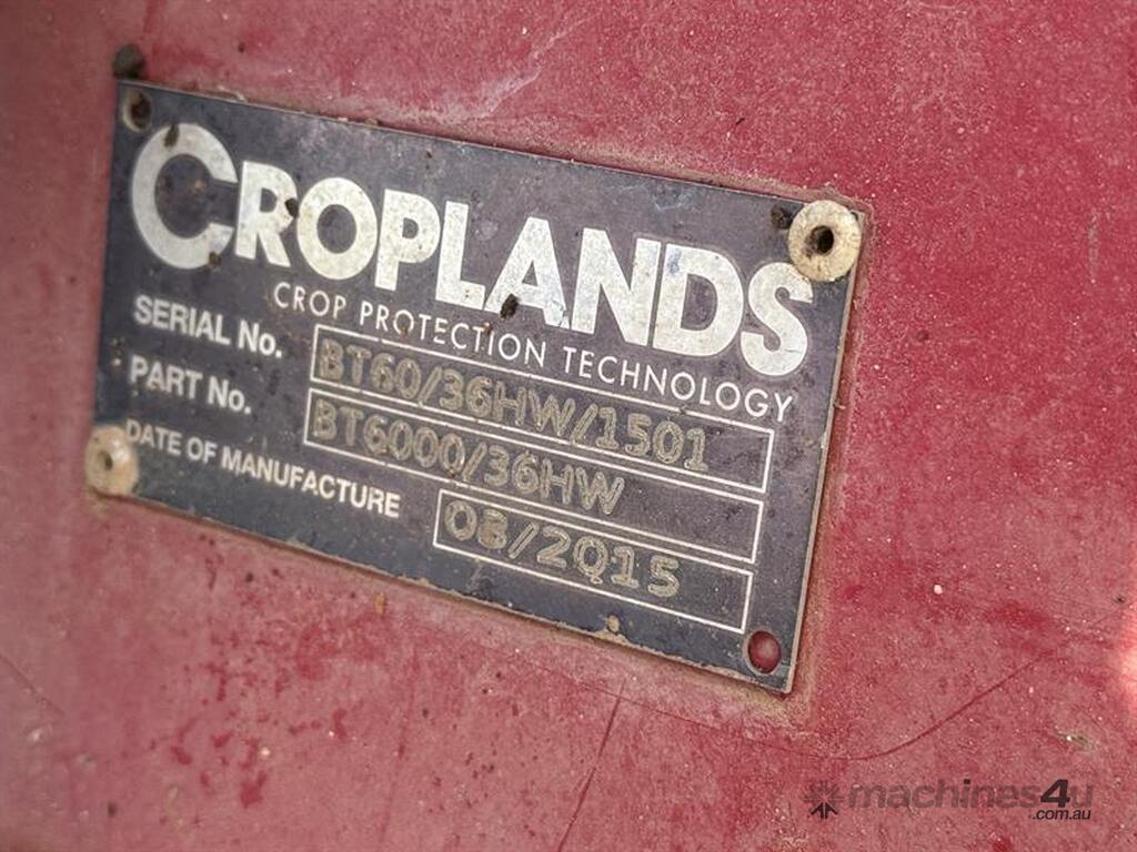 2015 CROPLANDS PEGASUS 6000. Serial Number BT60/36HW/1501. 6000 litre main tank. 36 metre boom. 520-85R42 tyres. New AR250 water pump and hydraulic motor 2 years ago, minimal work since. 7 sections. Section control via GPS, buyer will need to supply harness. 2.3-3 metre centres. TeeJet QJ360C nozzle bodies. Air mix 11002 nozzles. Croplands BA7000 display. Machine presents in good working conditon. Located Warren, NSW