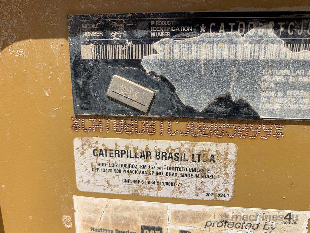 CP: CIRCA 2015,Caterpillar,D8T,Dozer (Steel Track),6 Cyl,Diesel,Odometer not visible,11288 (Hrs. Showing on Hour meter),Colour: Yellow,Unregistered,VIN: CAT00D8TCJ8B05099,Serial No: CAT00D8TCJ8B05099,Sold with No Plates