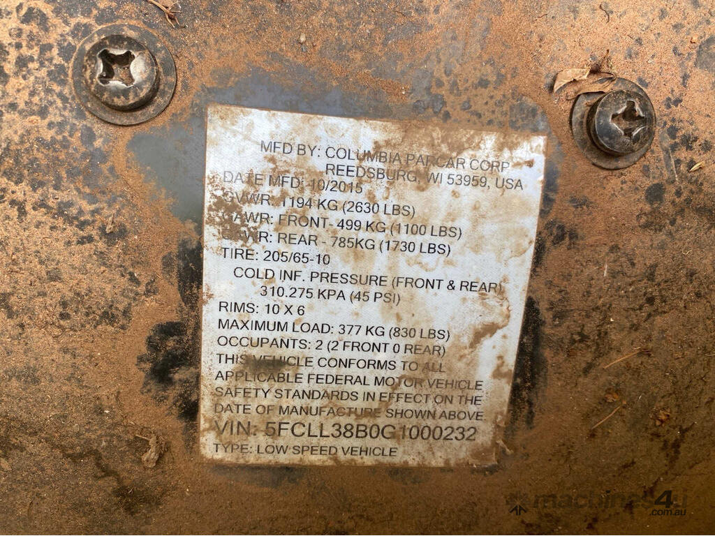 CP: CIRCA 2015,Built: 10/2015,Columbia,Electric Utility Vehicle,Electric,Odometer not visible,12193 (Hrs. Showing on Hour meter),Colour: Yellow,Unregistered,VIN: 5FCLL38B0G1000232,Serial No: 5FCLL38B0G1000232,Sold with No Plates