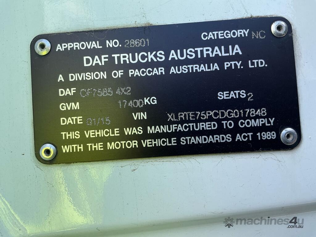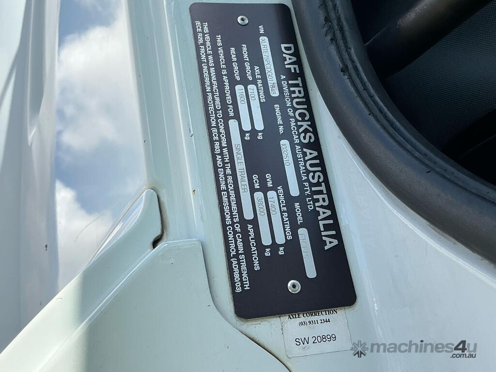 CP: 01/2015,DAF,CF 75.360,Prime Mover,Automatic & Manual Mode,Air,6 Cyl,Diesel Turbo,593892 (Kms. Showing on Odometer),Hourmeter not visible,Colour: White,Rego. No: NP(1ERT560), Unregistered WA,VIN: XLRTE75PCDG017848,Length: 14 ft,GVM: 17400,GCM: 38000,Sold with No Plates,WOVR Status: WOVR N/A,Incident Type: Impact