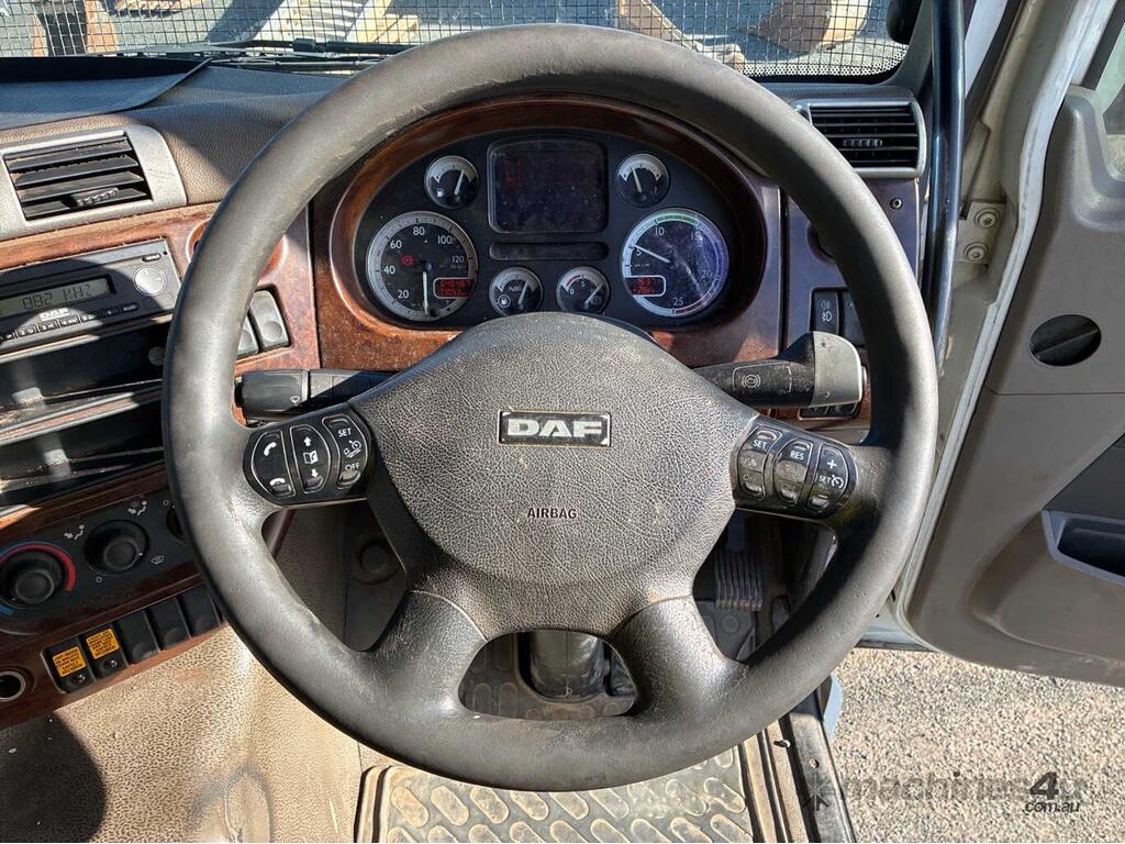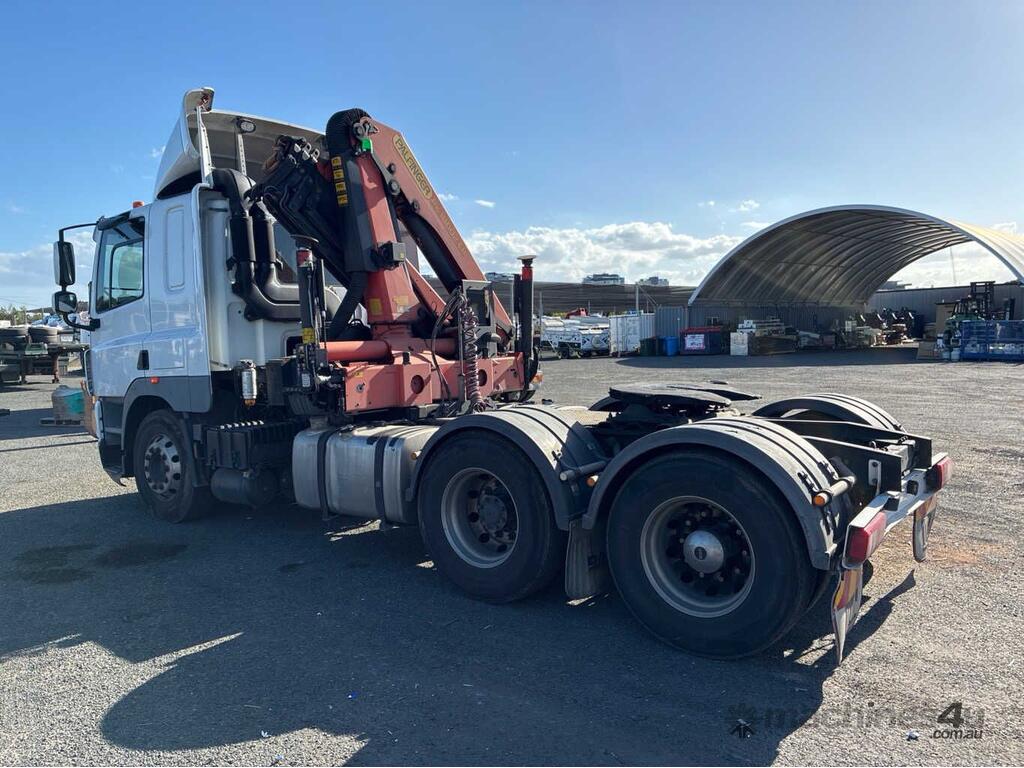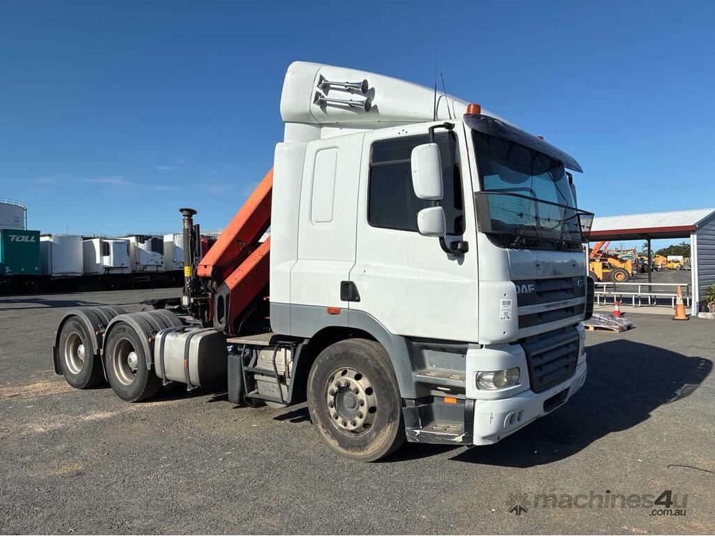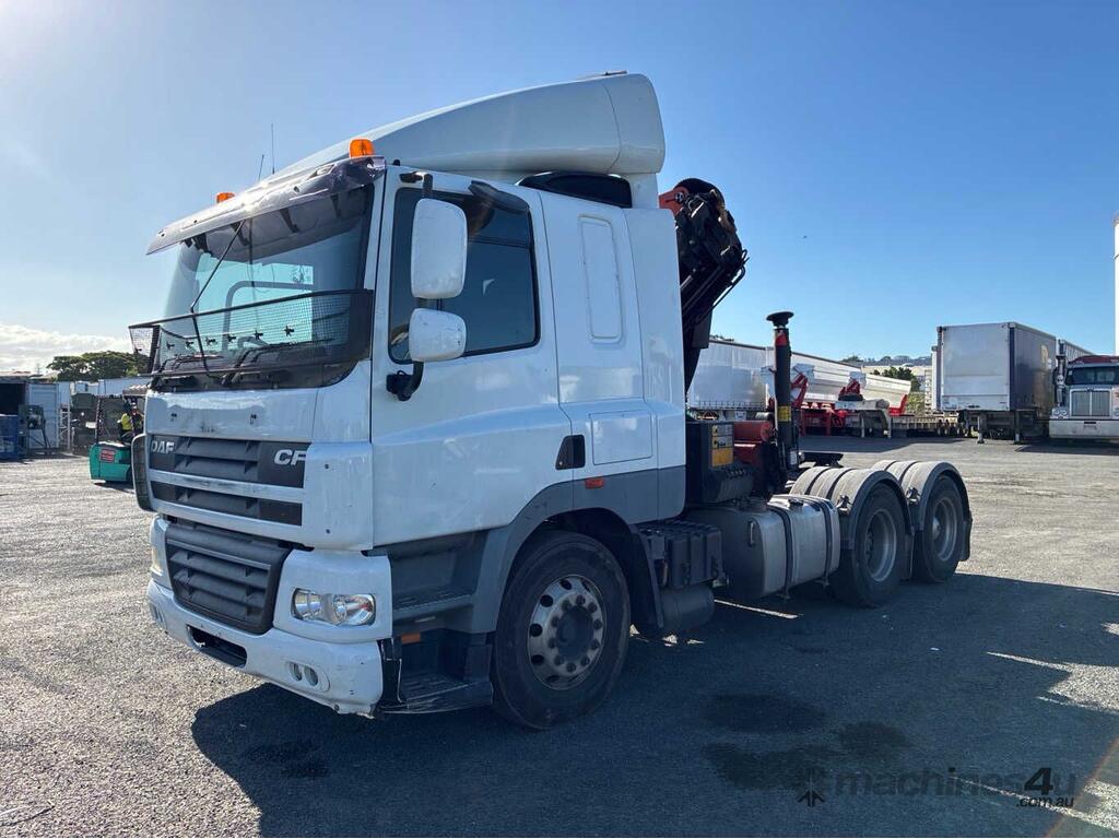 CP: 06/2015,DAF,CF7585,Prime Mover Crane Truck,Automatic,Airbag,6 Cyl,Diesel,646467 (Kms. Showing on Odometer),Hourmeter not visible,Colour: White,Rego. No: 064VPS QLD,VIN: XLRTT85MCEG041491,Key No: 174,GVM: 24600,GCM: 70000,Sold with No Plates,Key No: 174