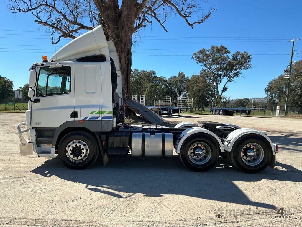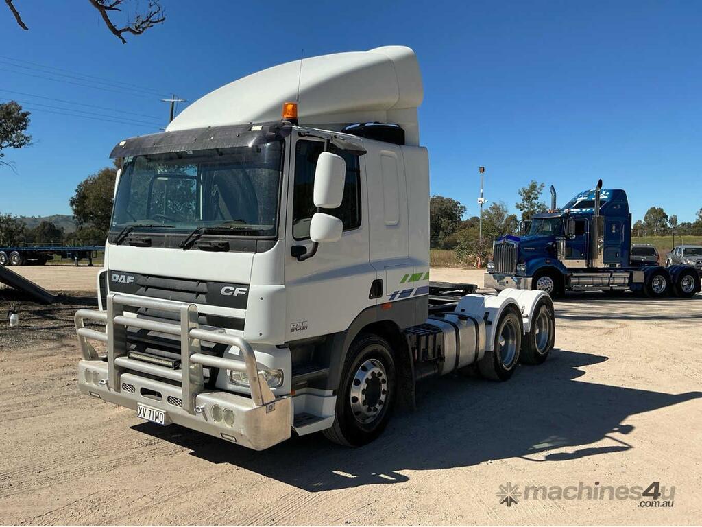 CP: 03/2015,DAF,CF7585,Prime Mover Sleeper Cab,Automatic,Airbag,Engine #: A191112,PACCAR MX 340 U3,6 Cyl,Diesel,Injected,839700 (Kms. Showing on Odometer),Hourmeter not visible,Colour: White,Rego. No: XV7IM0 NAT,VIN: XLRTT85MCEG037472,Length: 6.8 m,GVM: 24600,GCM: 70000,Sold with No Plates