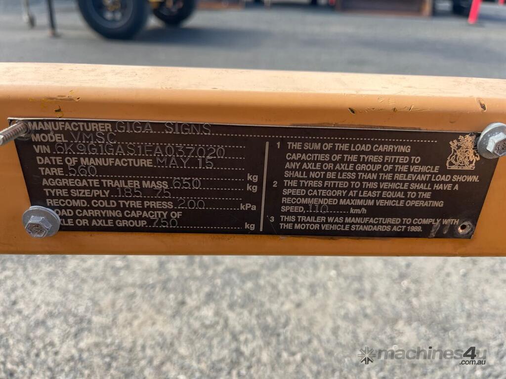 CP: 05/2015,Giga Signs,Single Axle VMS Board,0 (undefined),Unregistered,VIN: 6K9G1GAS1FA037020,Sold with No Plates