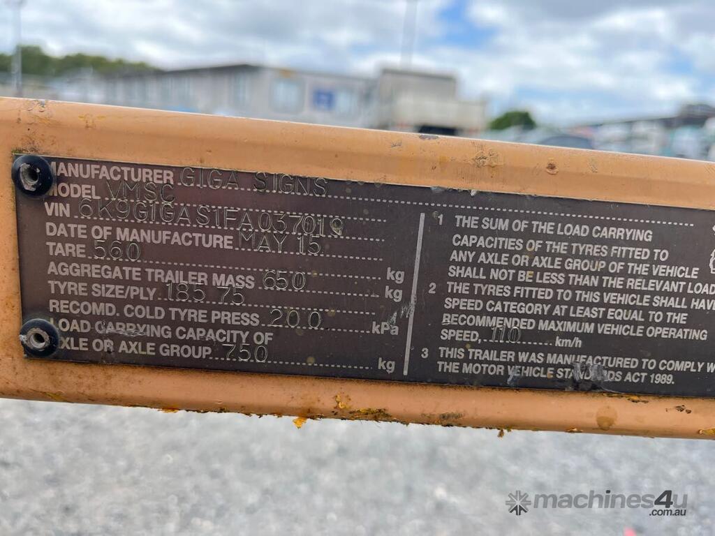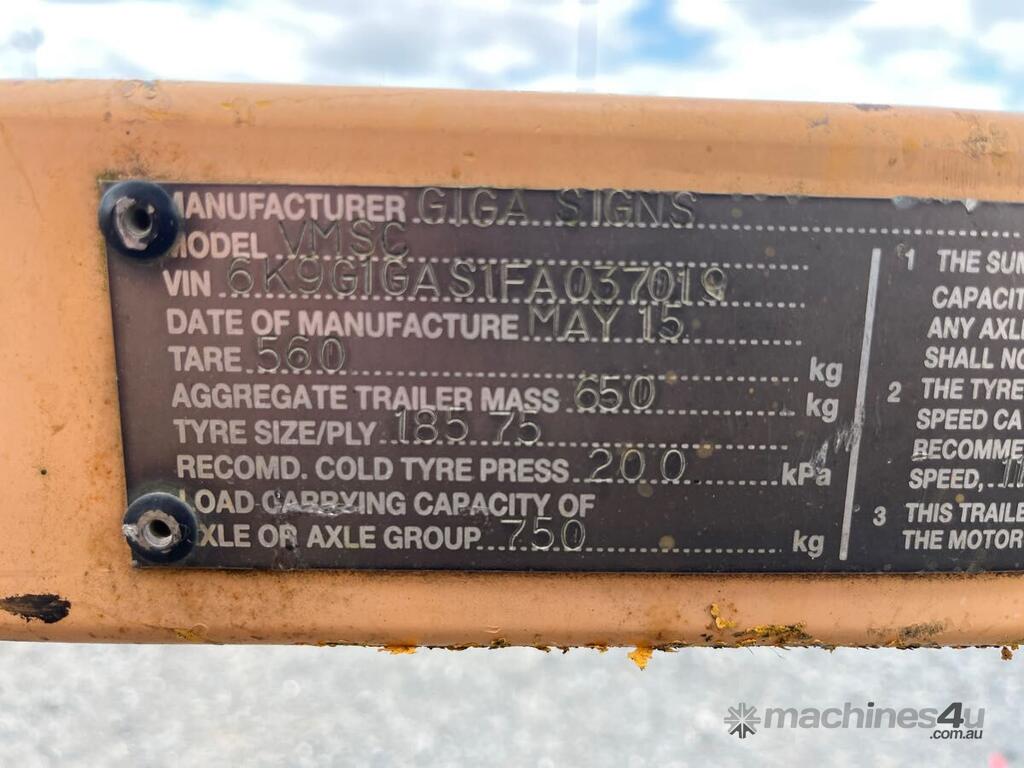 CP: 05/2015,Giga Signs,VMSC,Single Axle VMS Board,0 (undefined),Unregistered,VIN: 6K9G1GAS1FA037019,Sold with No Plates