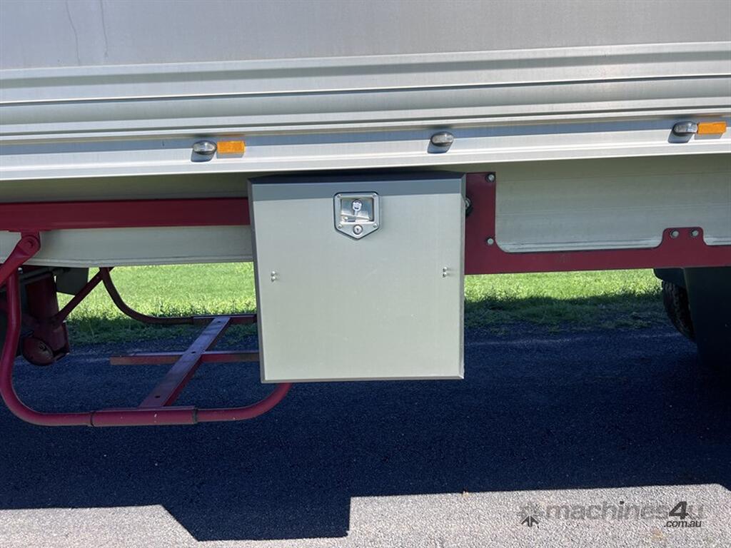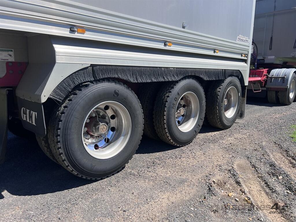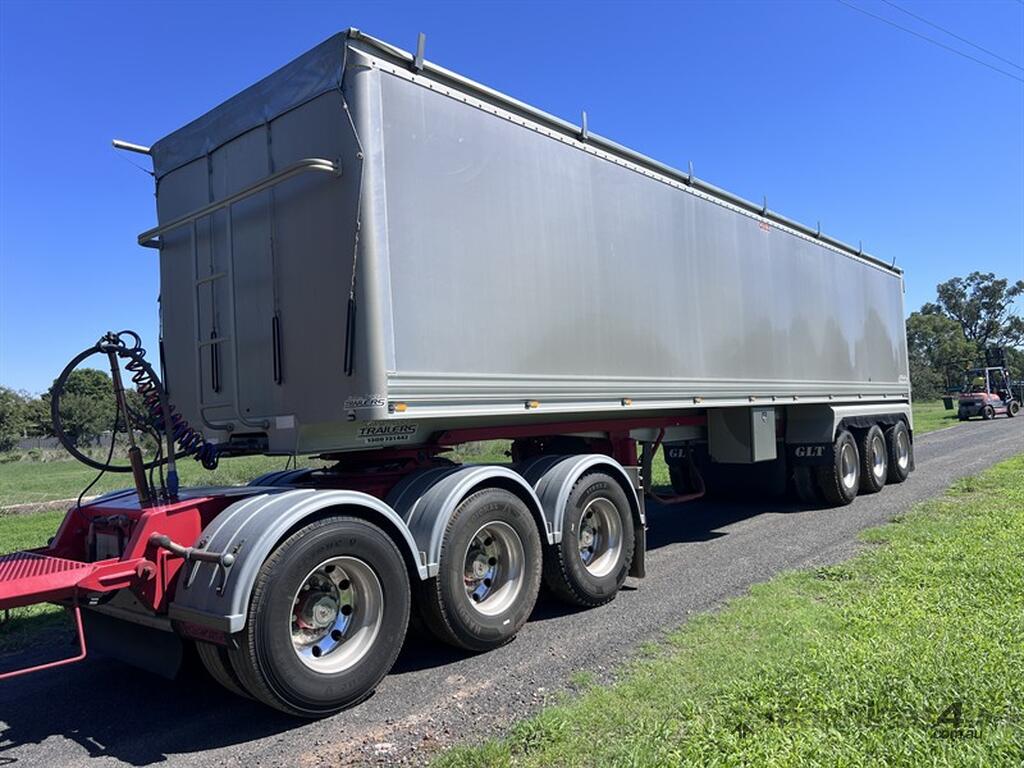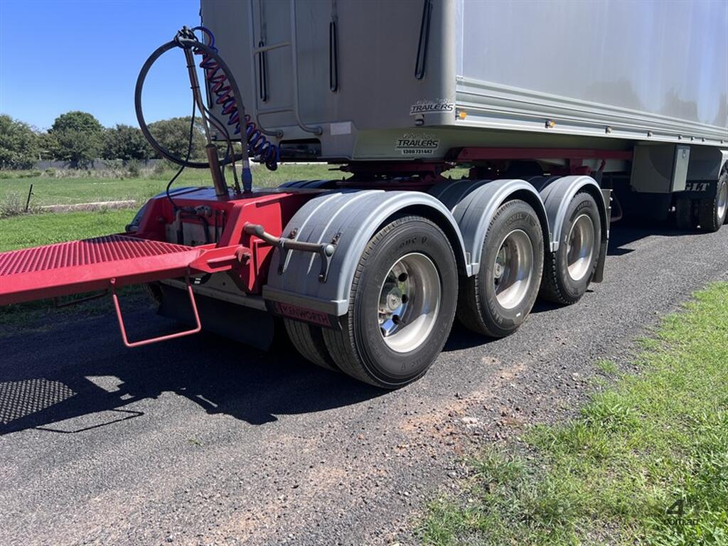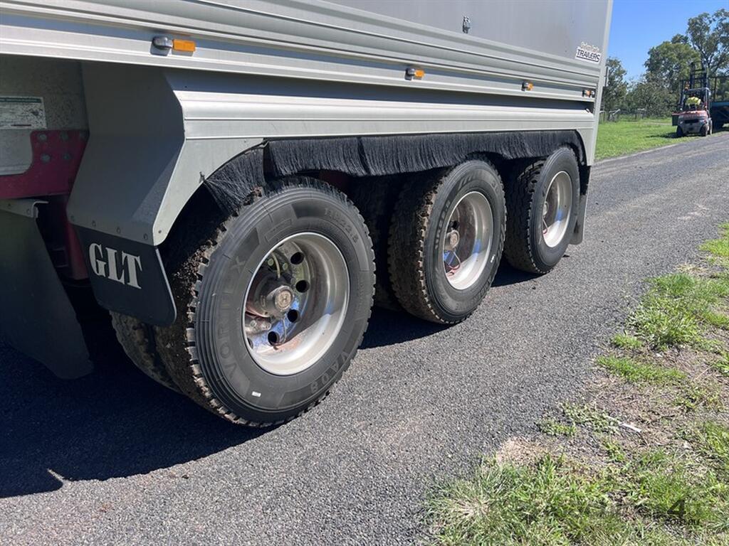 2015 Graham Lusty Trailers Road Train Tippers. 36 foot x 7.2 foot lead trailer, 38 foot x 7.2 foot rear trailer. approx 80% tyres all round, new tarps, just past pit inspection with no issues, airbag suspension, suspension rebushed, wheel alignment both trailers and Dolly. Right Weigh load scales. 2015 GLT Tri-axle Dolly. on trailers, air guage on dolly. Located at Ashley NSW, available at MRE Auctions online sale.