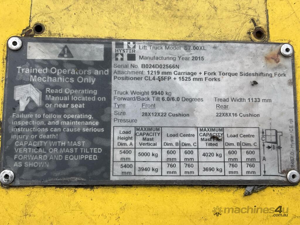CP: CIRCA 2015,Hyster,S7.00XL,Forklift,4 Cyl,Gas,Odometer not visible,8538 (Hrs. Showing on Hour meter),Colour: Yellow,Rego. No: NP(285492), Unregistered VIC,Serial No: B024D02566N,Sold with No Plates