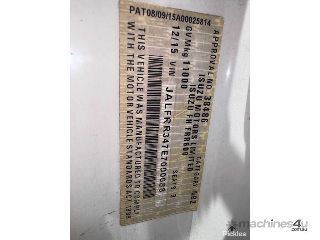 CP: 12/2015,Isuzu,FRR600,Refrigerated Pantech,Manual,Spring,6 Cyl,Diesel,Odometer not visible,Hourmeter not visible,Colour: White,Rego. No: XO19LD NSW,VIN: JALFRR347E7000088,GVM: 11000,GCM: 16000,Sold with No Plates,WOVR Status: WOVR N/A,Incident Type: Malicious