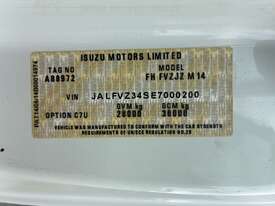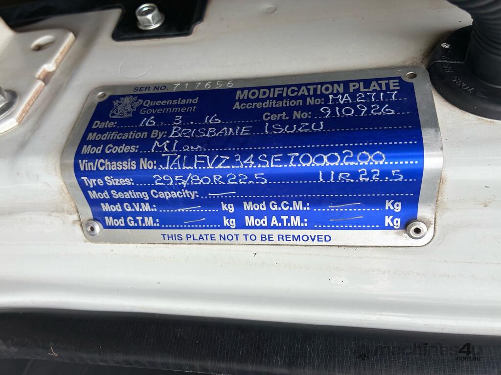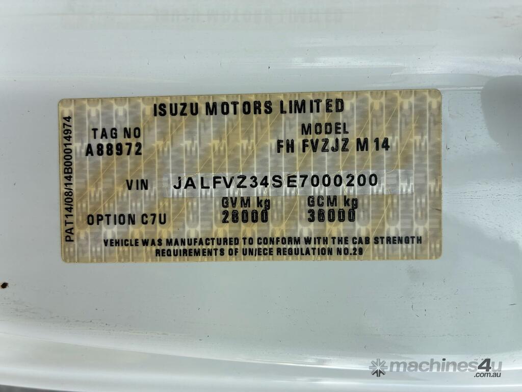 CP: 06/2015,Isuzu,FVZ 1400,Tipper Crane Truck (Day Cab),Automatic,Spring,Sitec,6 Cyl,Diesel,132539 (Kms. Showing on Odometer),3659 (Hrs. Showing on Hour meter),Colour: White,Rego. No: NP(501WEI), Unregistered QLD,VIN: JALFVZ34SE7000200,Key No: 258,Length: 6200 m,GVM: 28000,GCM: 36000,Sold with No Plates,Key No: 258