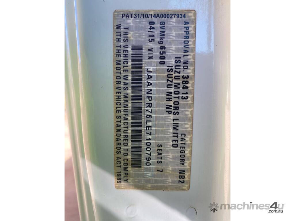 CP: 04/2015,Isuzu,N Series,NPR 250/300,Tipper Dual Cab,Manual Overdrive,Leaf,Engine #: 4HK1315694,Diesel ,5.2 Ltr,4 Cyl,Diesel,6 Gears,89181 (Kms. Showing on Odometer),Hourmeter not visible,Colour: White,Rego. No: NP(828257), Unregistered NT,VIN: JAANPR75LE7100790,Length: 7 m,GVM: 6500,GCM: 10000,Sold with No Plates