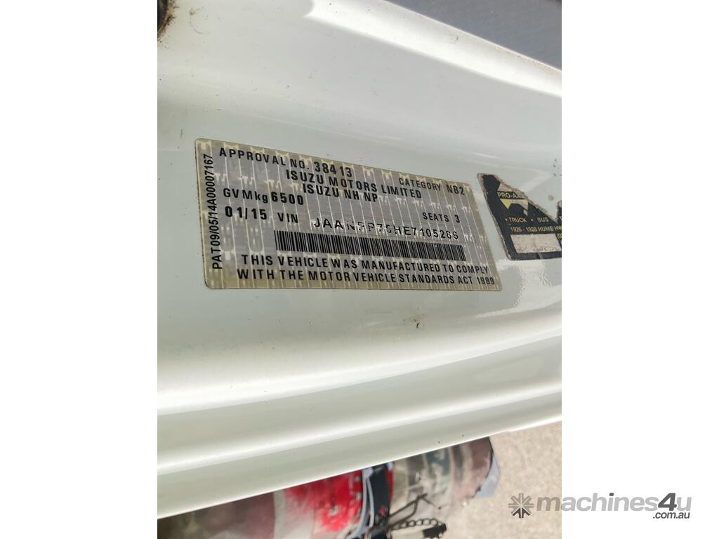 CP: 01/2015,Isuzu,NPR 300 MWB Premium,Tipper,Automatic,Spring,4 Cyl,Diesel,100167 (Kms. Showing on Odometer),Hourmeter not visible,Colour: White,Rego. No: 1EA6RF VIC,Rego expiry: 16/10/2026,VIN: JAANPR75HE7105286,Key No: 3,GVM: 6500,GCM: 10000,Sold with No Plates,Key No: 3