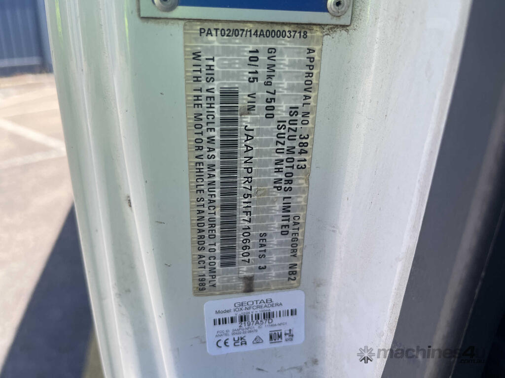 CP: 10/2015,Isuzu,NPR 75-190,Pantech (Day Cab),Manual,Leaf Spring,4 Cyl,Diesel Turbo,6 Gears,171830 (Kms. Showing on Odometer),Hourmeter not visible,Colour: White,Rego. No: SB61MD SA,VIN: JAANPR75HF7106607,Key No: P101,Length: 6.1 m,GVM: 7500,GCM: 11000,Sold with No Plates,Key No: P101