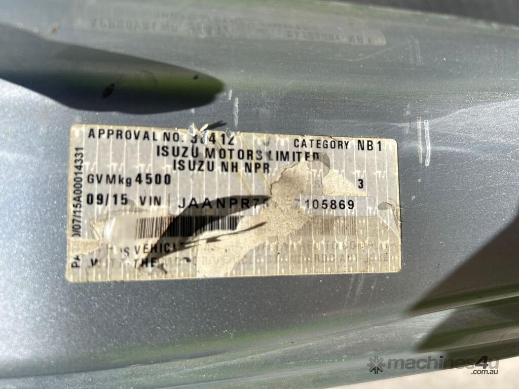 CP: 09/2015,Isuzu,NPR,Day Cab,Automatic,Spring Suspension ,4 Cyl,Diesel,301945 (Kms. Showing on Odometer),Hourmeter not visible,Colour: Silver,Rego. No: NP(FFQ53M), Unregistered NSW,VIN: JAANPR75HF7105869,Length: 6.7 M,GVM: 4500,GCM: 8000,Sold with No Plates,WOVR Status: Statutory Write-Off,Incident Type: Impact