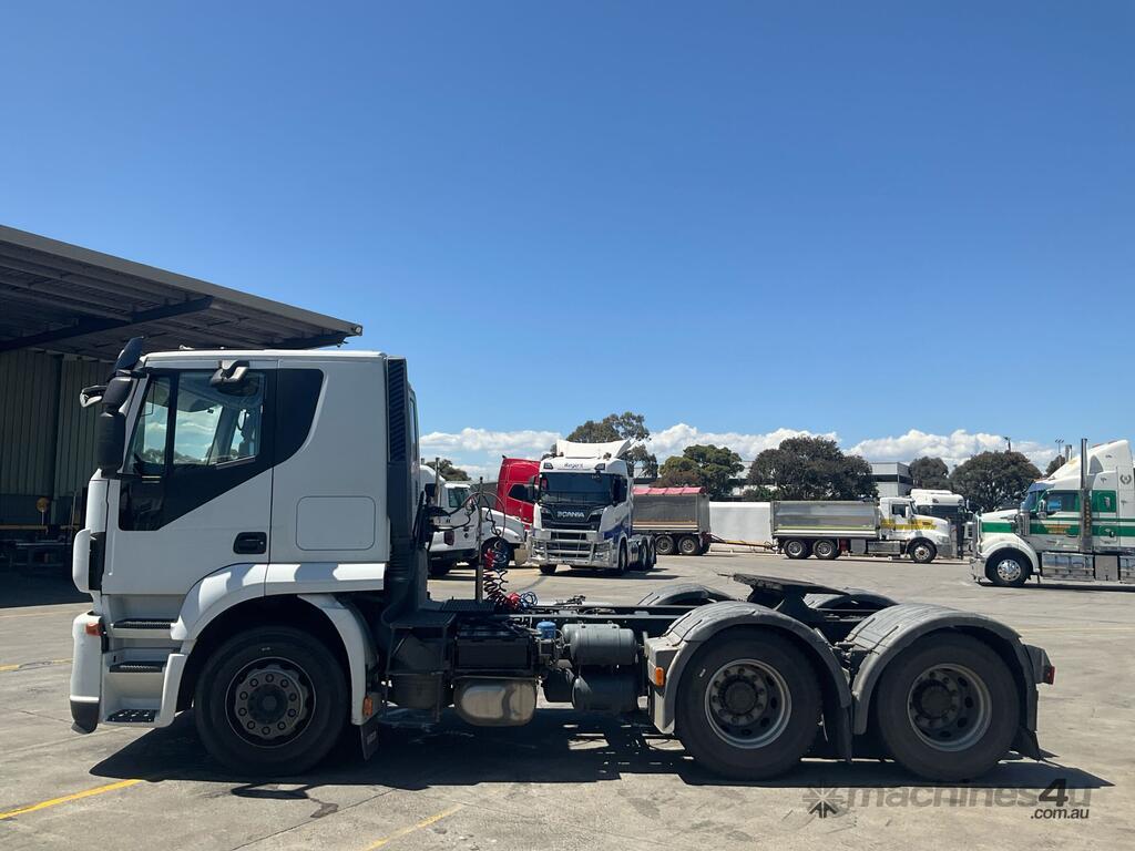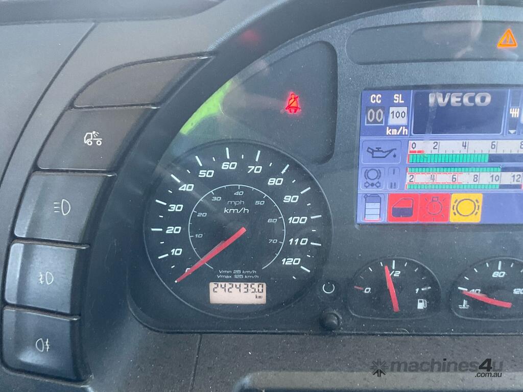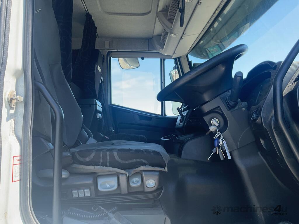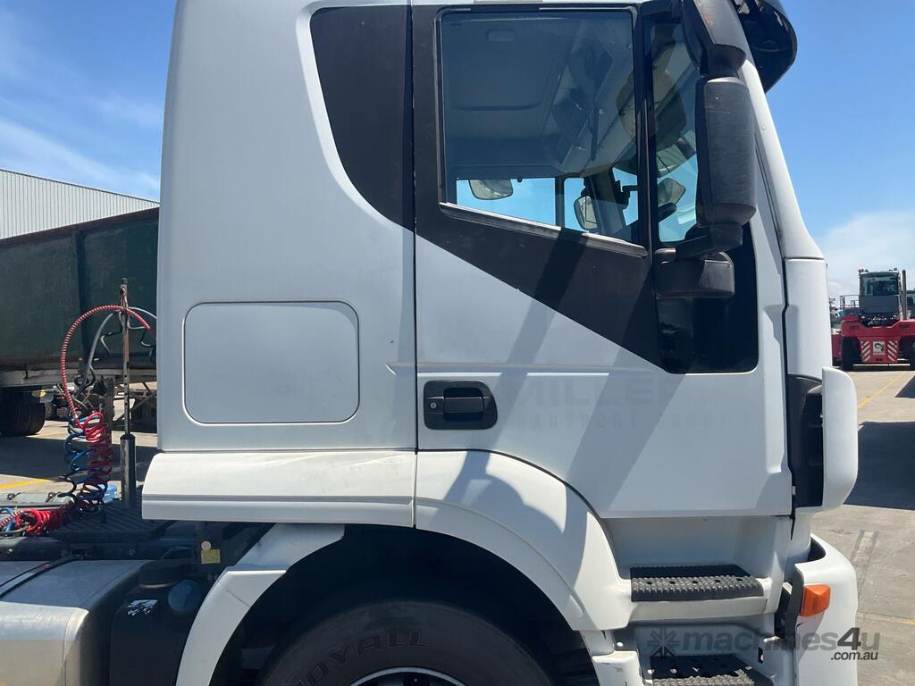 CP: 07/2015,Iveco,Stralis,Prime Mover,Automatic,Air Bag Suspension,6 Cyl,Diesel,242435 (Kms. Showing on Odometer),11297 (Hrs. Showing on Hour meter),Colour: White,Unregistered,VIN: WJMS2NTH40C315681,Key No: 4,GVM: 25100,GCM: 50000,Sold with No Plates,Key No: 4