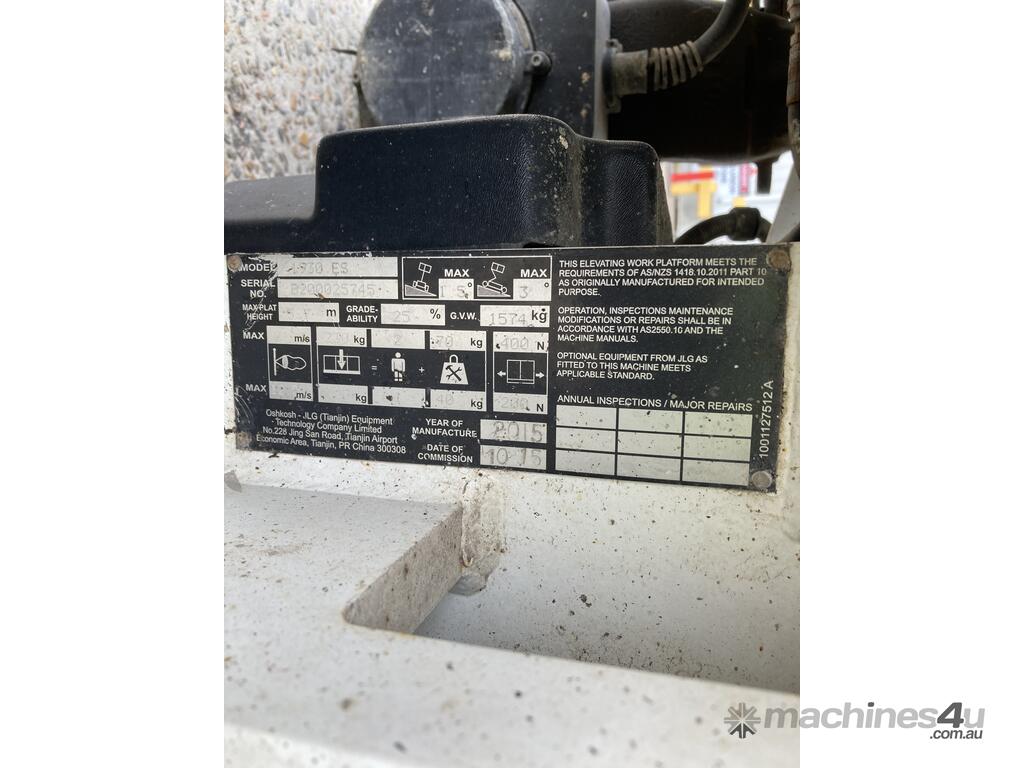 CP: 10/2015,JLG,1930ES,Scissor Lift (Electric),Electric,Odometer not visible,965 (Hrs. Showing on Hour meter),Colour: White,Unregistered,Serial No: B,Sold with No Plates,Key No: Tied On
