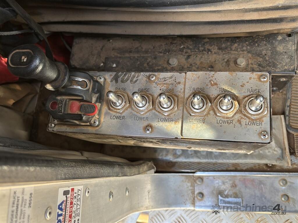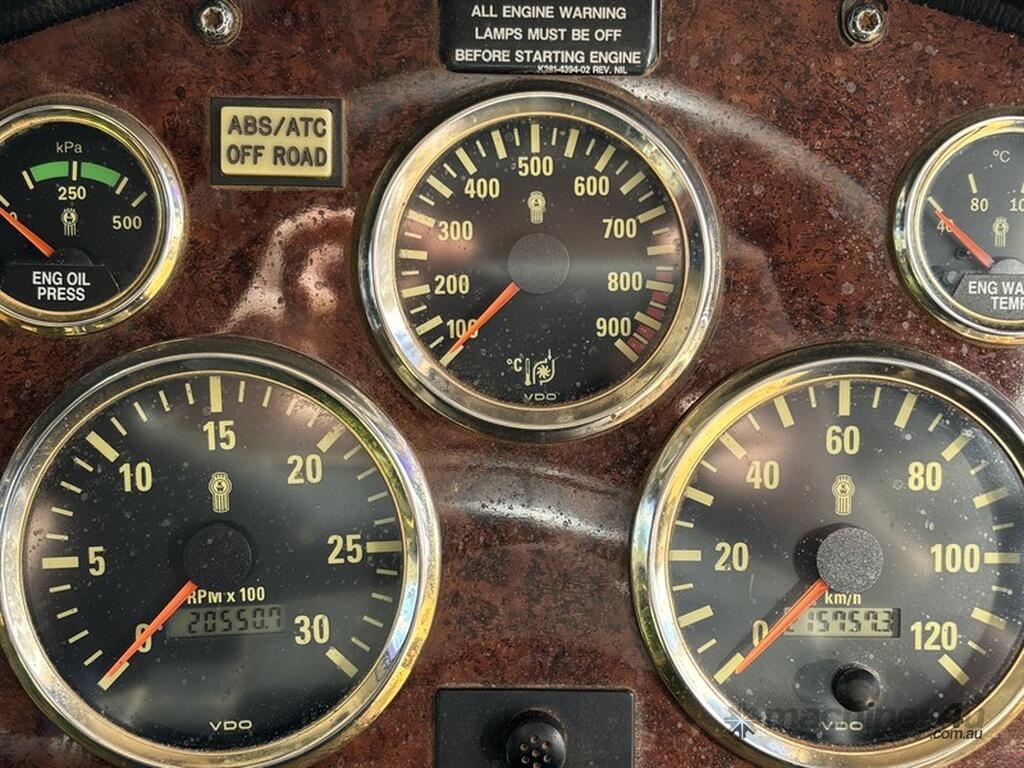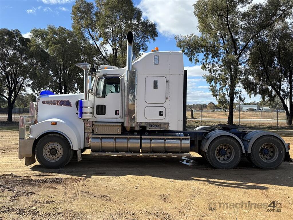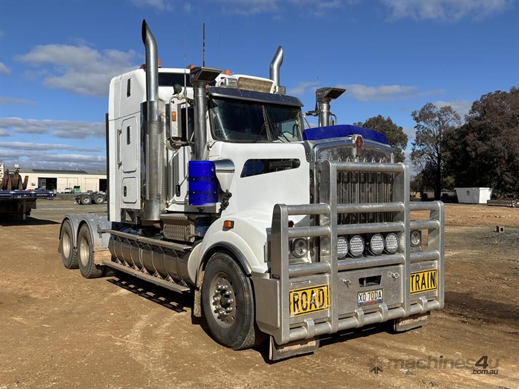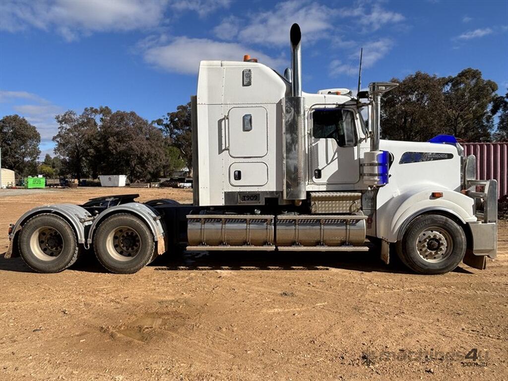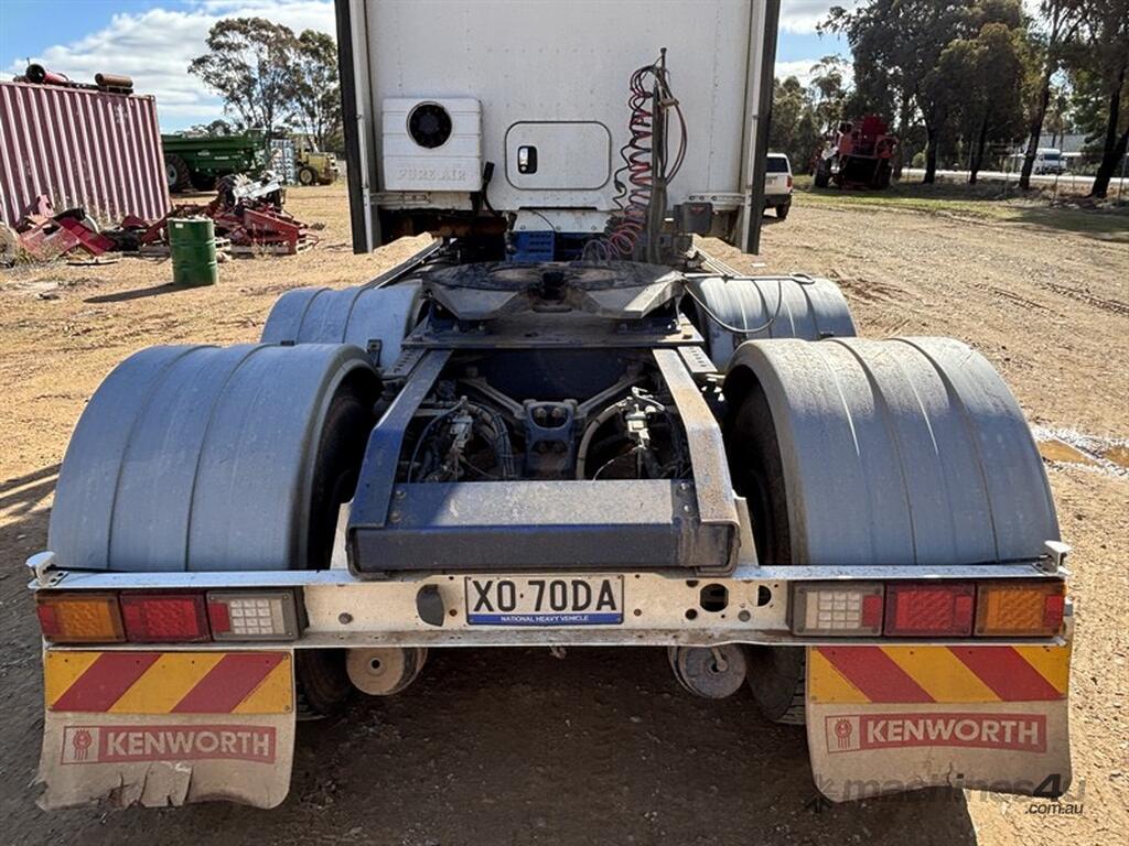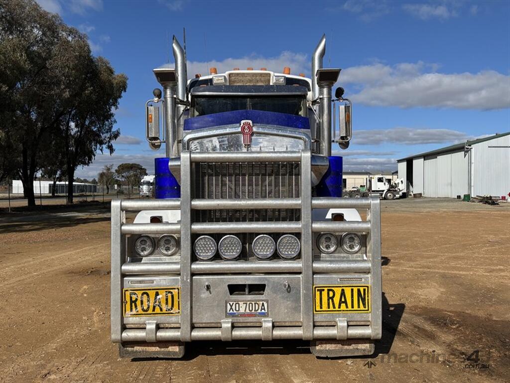2015 KENWORTH T909, VIN: 6F5000000FA454076, Cummins E5, 18sp Roadranger, 8 bag air suspension, Meritor 4.56 diffs with cross locks, Hot Shift PTO hydraulics with return line, side tipper controls, FUPS bar, Red Dot, Pure Air bunk cooler, diesel heater,Right Weigh scales, Jost greaseless turntable, inverter and deep cycle batteries, reman front diff in 2024, had engine rebuild at approx 600 000km, showing approx 1.2M kms, 110 tonne rated, good condition, located Temora, available through MRE Auctions, contac