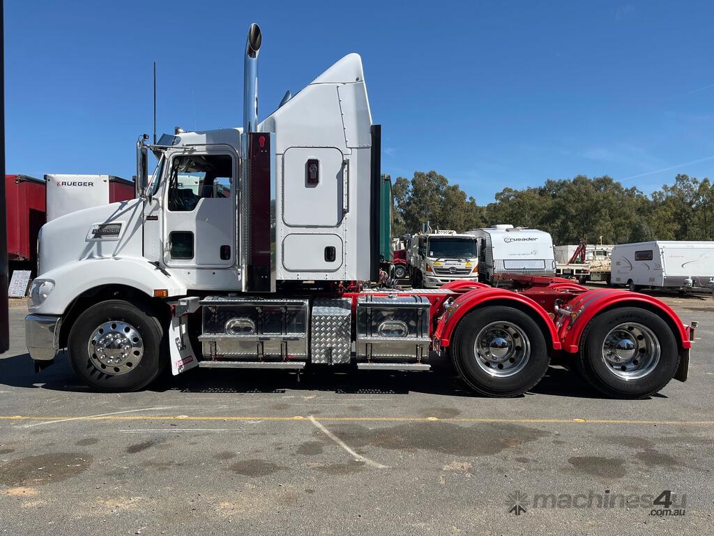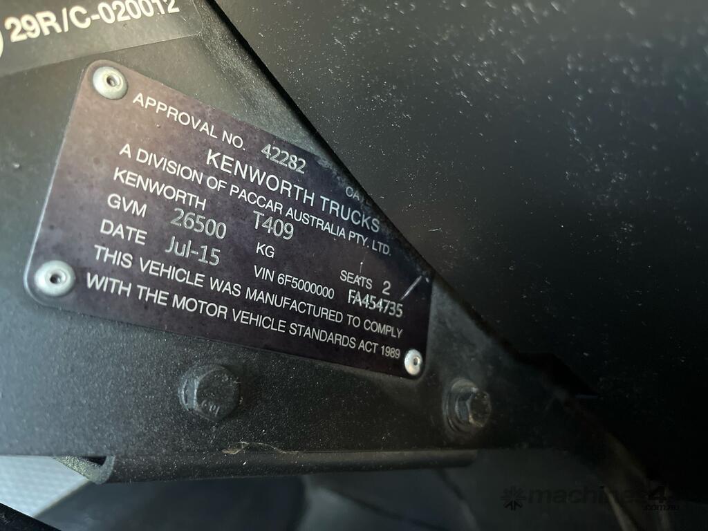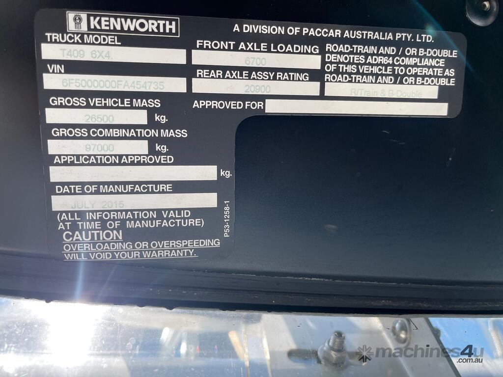 CP: 07/2015,Kenworth,T409,Prime Mover Sleeper Cab,Automatic,Airbag Suspension ,Engine #: 80046604,Cummins ISXe5,6 Cyl,Diesel,309871 (Kms. Showing on Odometer),32059 (Hrs. Showing on Hour meter),Colour: White,Unregistered,VIN: 6F5000000FA454735,Key No: 28,GVM: 26500,GCM: 97000,Sold with No Plates,Key No: 28