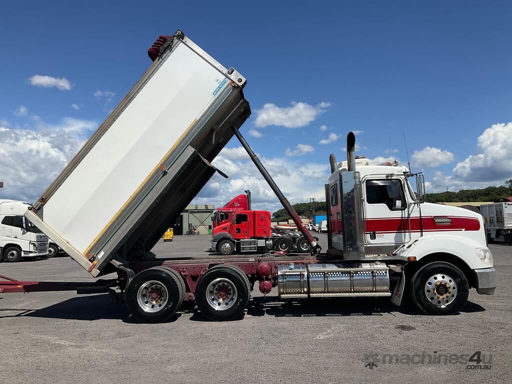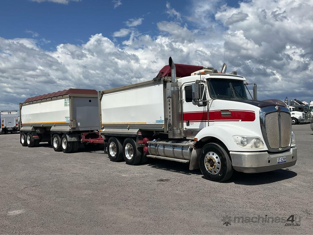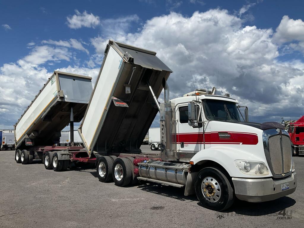 CP: 05/2015,Kenworth,T409,Tipper & Quad Dog Combination,Automatic,Airbag,Engine #: 79803234,Cummins ISXE5,6 Cyl,Diesel Turbo,218440 (Kms. Showing on Odometer),24375 (Hrs. Showing on Hour meter),Colour: White,Rego. No: XP42NM NAT,VIN: 6F5000000FA454284,Key No: 359E,Length: 7.9 M,GVM: 26500,GCM: 97000,Sold with No Plates,Key No: 359E