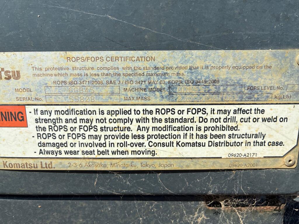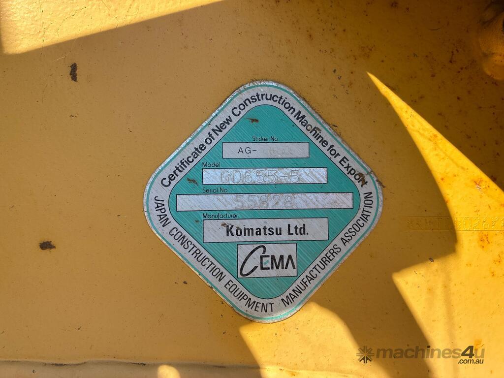 CP: CIRCA 2015,Komatsu,GD655-5,Motor Grader,Diesel,15066 (Kms. Showing on Odometer),3338 (Hrs. Showing on Hour meter),Colour: Yellow,Rego. No: NP(1GZ8SC), Unregistered VIC,Serial No: 55828,Sold with No Plates