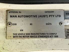 CP: 07/2015,MAN,6x4 Prime Mover,Automatic,Airbag,Diesel,Turbo,Odometer not visible,Hourmeter not visible,Colour: Yellow,Rego. No: NP(XP65GJ), Unregistered NSW,VIN: WMA30XZZ1FL069765,GVM: 26000,GCM: 68500,Sold with No Plates,WOVR Status: Repairable Write-Off,Incident Type: Malicious,Impact