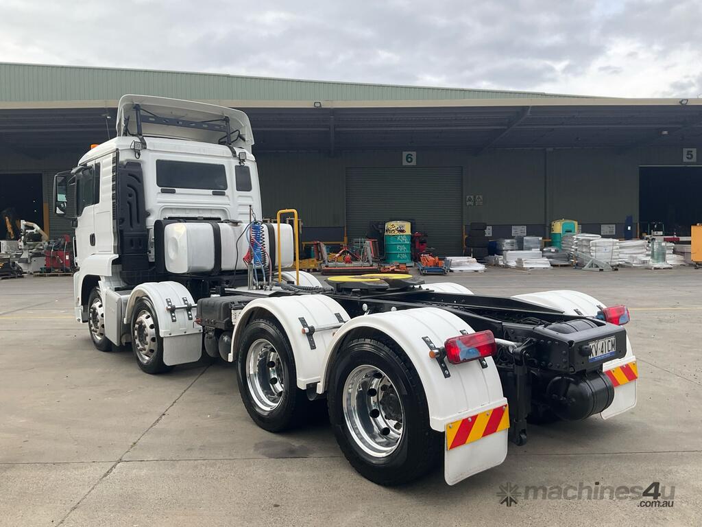 CP: 07/2015,MAN,TGS,Prime Mover,Automatic,Air Bag Suspension,6 Cyl,Diesel,723921 (Kms. Showing on Odometer),32019 (Hrs. Showing on Hour meter),Colour: White,Rego. No: NP(XV41CM), Unregistered VIC,VIN: WMA30SZZ1FL069901,Key No: 55,GVM: 35000,GCM: 68000,Sold with No Plates,Key No: 55