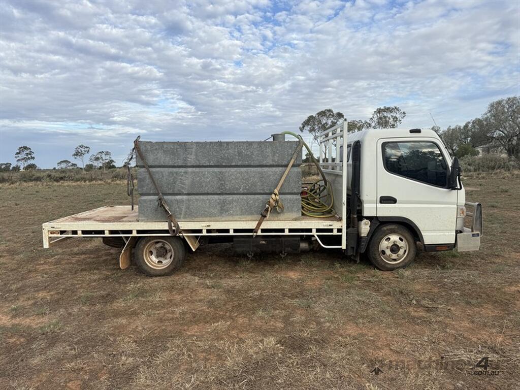 2015 MITSUBISHI Canter L7/800, VIN: JLFFEB21E0KJ25065.Table top truck with sides. Fuso 515 Model.5 Speed Manual. 78,874klms on Odometer showing. Checker plate floor. Low kilometers in good condition. A/C cab. Floor mats, UHF radio, Multi media sound system included. Hartwig aluminium bullbar & steel toolbox fitted. ABS light is on. Under tray spare tyre. One owner. CGM:4500kgs GVM:8000kgs. Tray: L 4320mm x W 2160mm. Reg: CH 87 SP, Expiry: 4/5/26. Tank and pump NOT included. Located Nyngan, NSW.