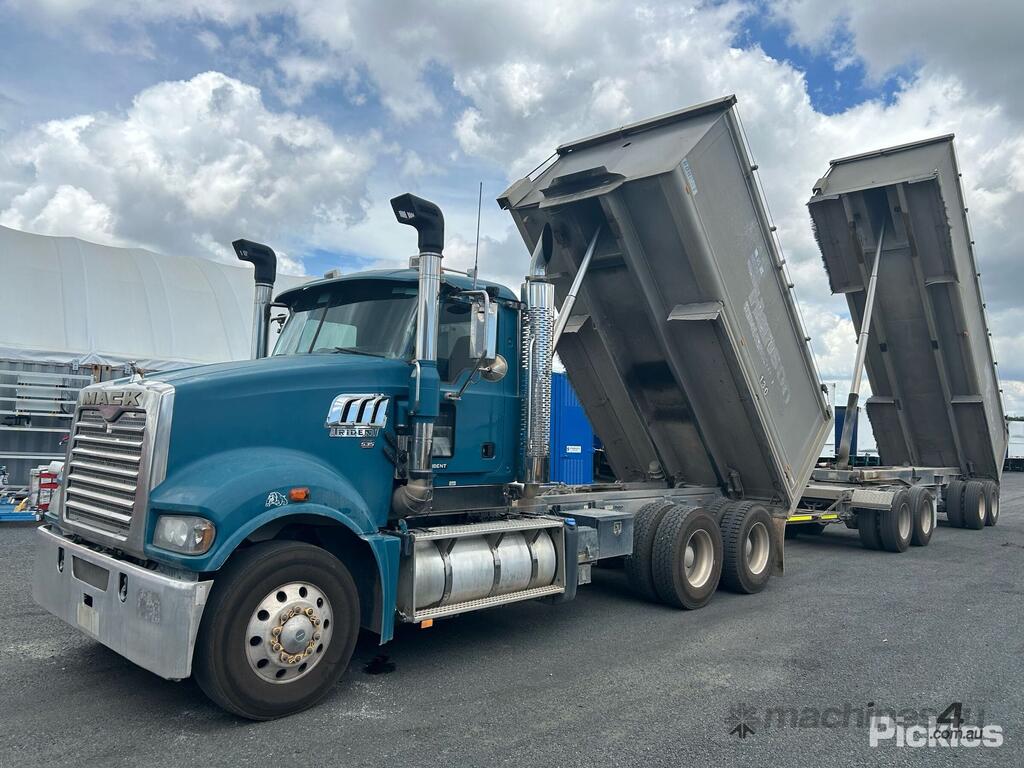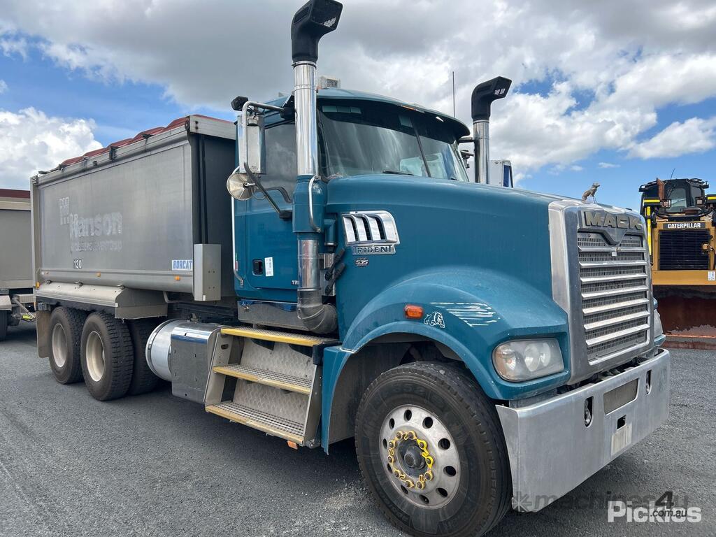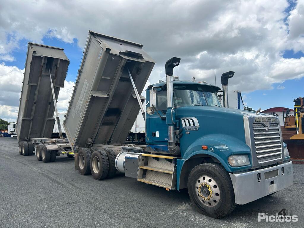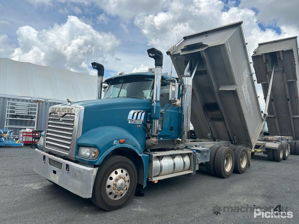 CP: 04/2015,Mack,Trident,Tipper & Quad Dog Combination,Airbag,MP8 500C EUV,6 Cyl,Diesel,980229 (Kms. Showing on Odometer),Hourmeter not visible,Colour: Blue,Unregistered,VIN: 6FMM12H56FD806393,Key No: 41,GVM: 26000,GCM: 60000,Sold with No Plates,Key No: 41