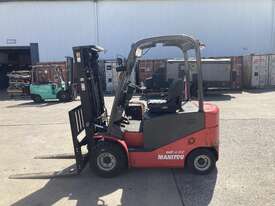 CP: CIRCA 2015,Manitou,ME425,Counter Balance Forklift,Electric,Odometer not visible,Hourmeter not visible,Colour: Red,Unregistered,Serial No: 861263,Sold with No Plates,WOVR Status: WOVR N/A,Incident Type: Malicious,Key No: Tied On