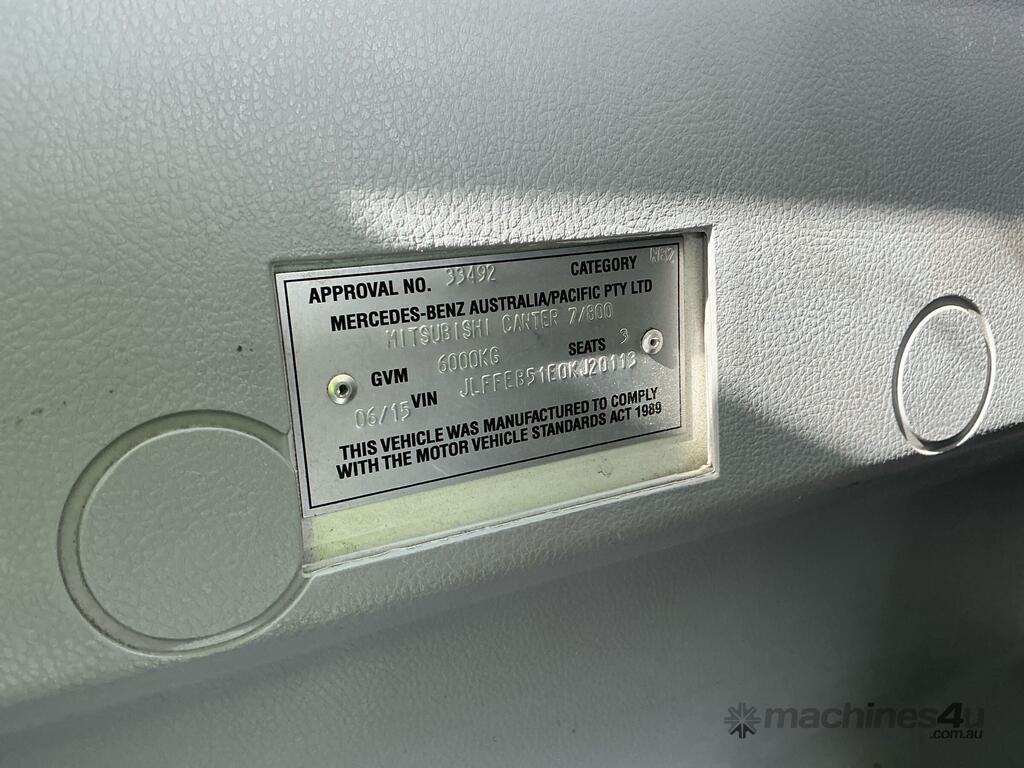 CP: 06/2015,Mitsubishi,Canter 615,Pantech,Automatic,Leaf Spring,4 Cyl,Diesel,279405 (Kms. Showing on Odometer),Hourmeter not visible,Colour: White,Rego. No: NP(1EW6PH), Unregistered,VIN: JLFFEB51E0KJ20113,Key No: 14,GVM: 6000,GCM: 9000,Sold with No Plates,Key No: 14