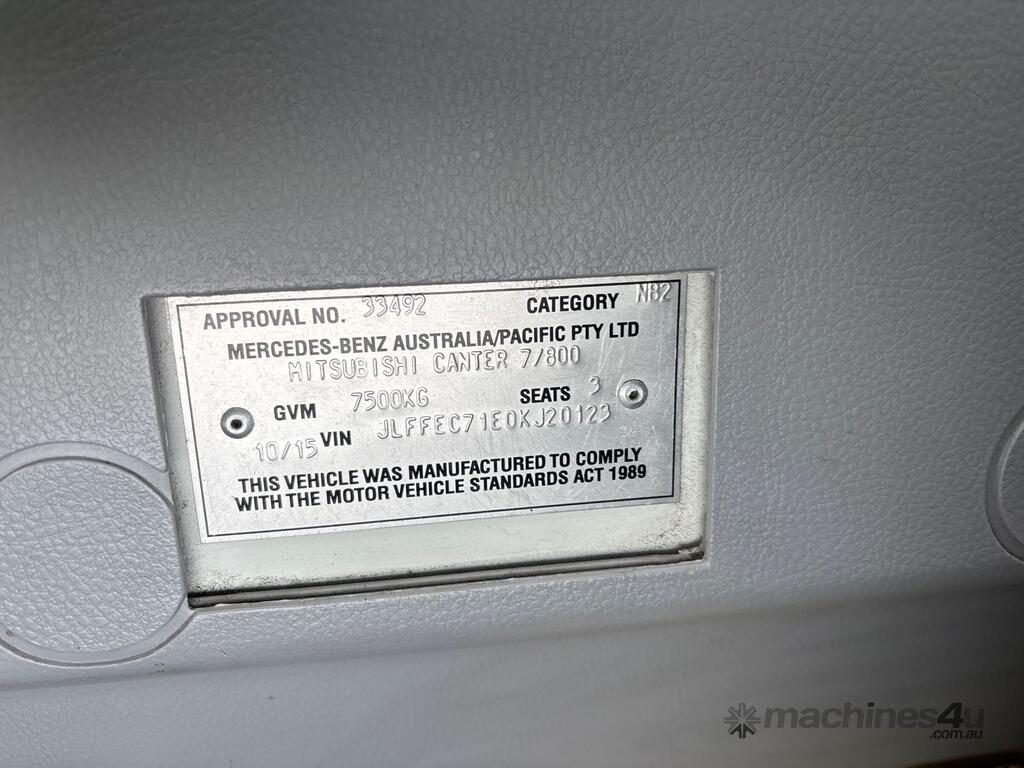 CP: 10/2015,Mitsubishi,Canter L 500/600,Pantech,Automatic,Diesel,Odometer not visible,Hourmeter not visible,Colour: White,Rego. No: NP(1FS9CM), Unregistered VIC,VIN: JLFFEC71E0KJ20123,Length: 4.5 m,GVM: 7500,GCM: 11000,Sold with No Plates,WOVR Status: WOVR N/A,Incident Type: Impact