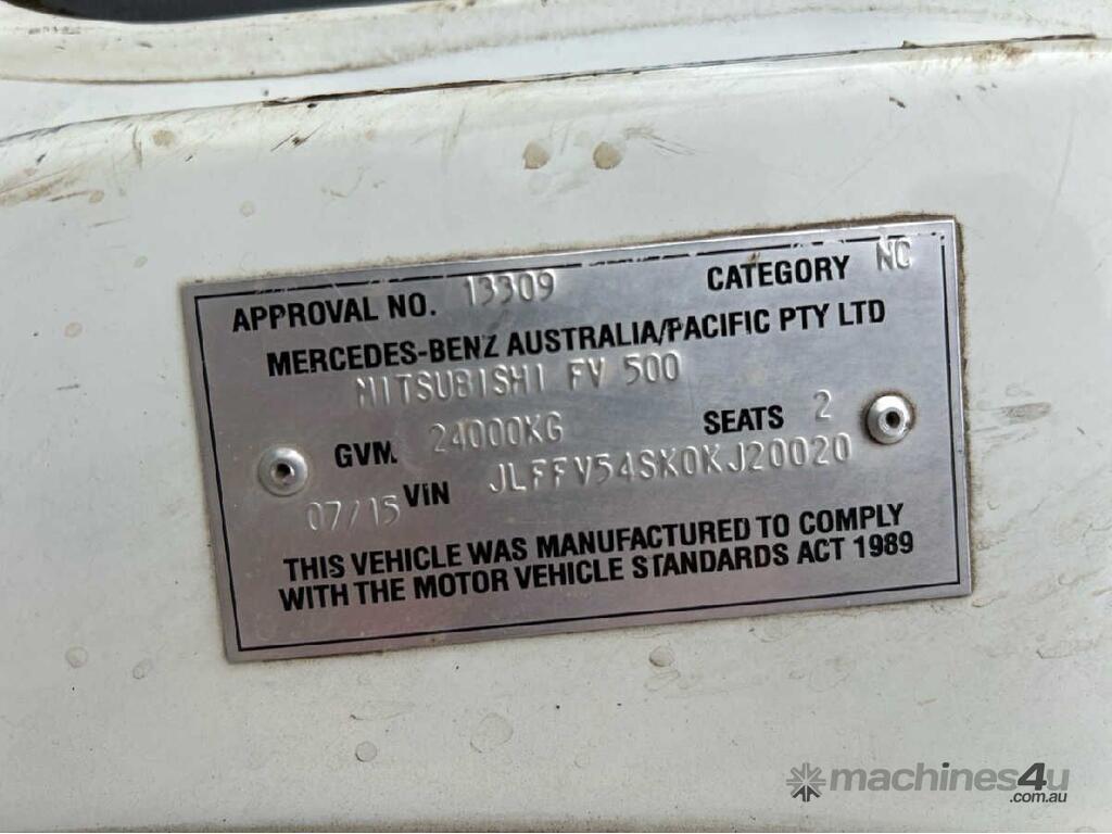 CP: 07/2015,Mitsubishi Fuso,FV500,Tipper,Automated Manual Transmission,Airbag Rear Suspension ,Engine #: 457972C0311876,6 Cyl,Diesel Turbo,374116 (Kms. Showing on Odometer),Hourmeter not visible,Colour: White,Rego. No: NP(E99VO), Unregistered TAS,VIN: JLFFV54SK0KJ20020,GVM: 24000,GCM: 53000,Sold with No Plates