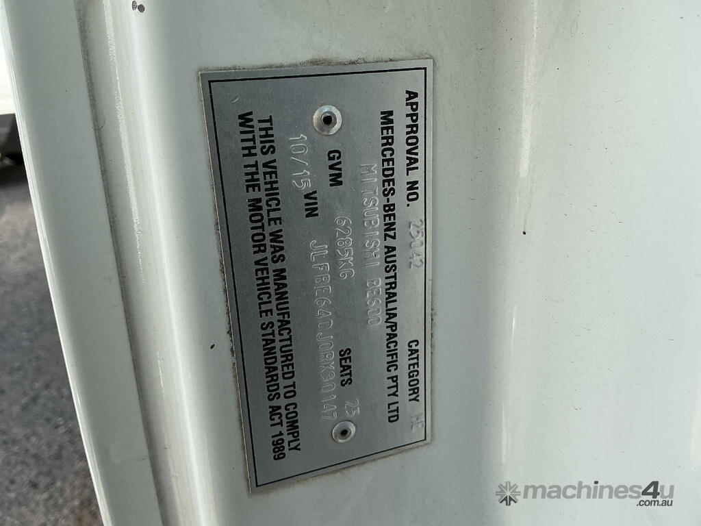 CP: 10/2015,Mitsubishi Fuso,Rosa BE600,Passenger Bus,Automatic,Diesel,Odometer not visible,Hourmeter not visible,Colour: White,Rego. No: NP(BS08KJ), Unregistered VIC,VIN: JLFBE640J0RK30147,GVM: 6285,Sold with No Plates,WOVR Status: WOVR N/A,Incident Type: Not Applicable