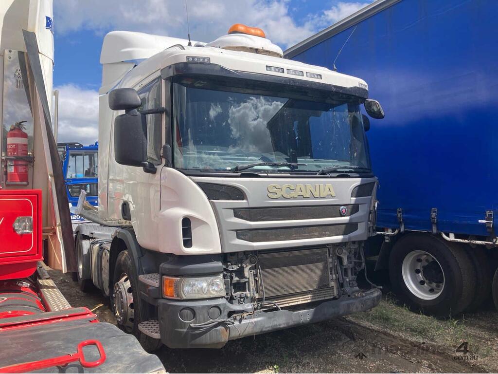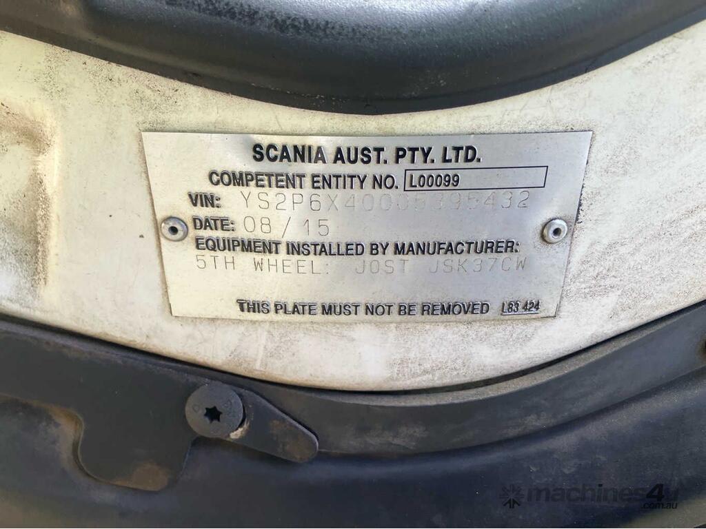 CP: 08/2015,Scania,P440,6x4 Sleeper Cab Prime Mover,Automatic,Airbag,6 Cyl,Diesel,Odometer not visible,Hourmeter not visible,Colour: White,Rego. No: NP(XB81JG), Unregistered QLD,VIN: YS2P6X2,GVM: 26100,GCM: 60000,Sold with No Plates,WOVR Status: WOVR N/A,Incident Type: Impact