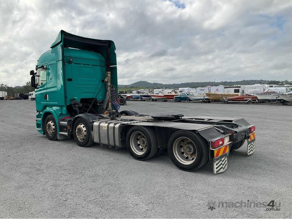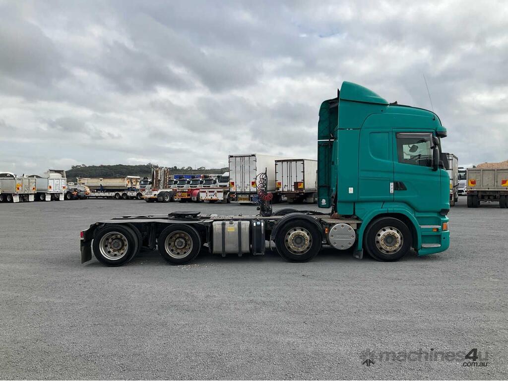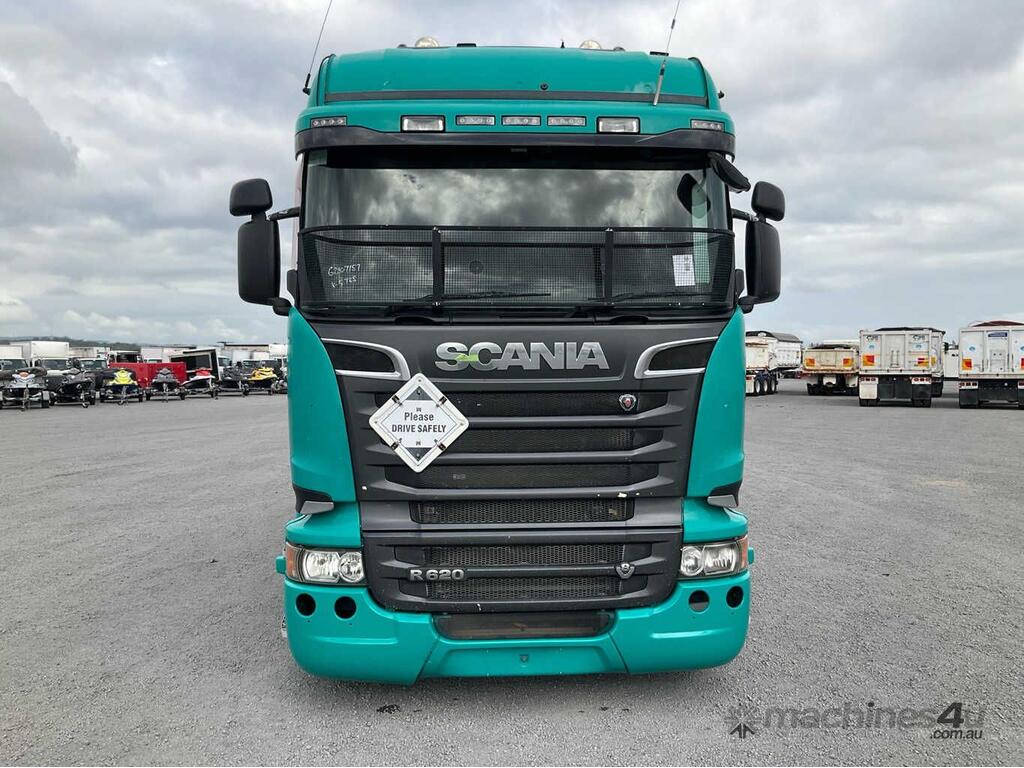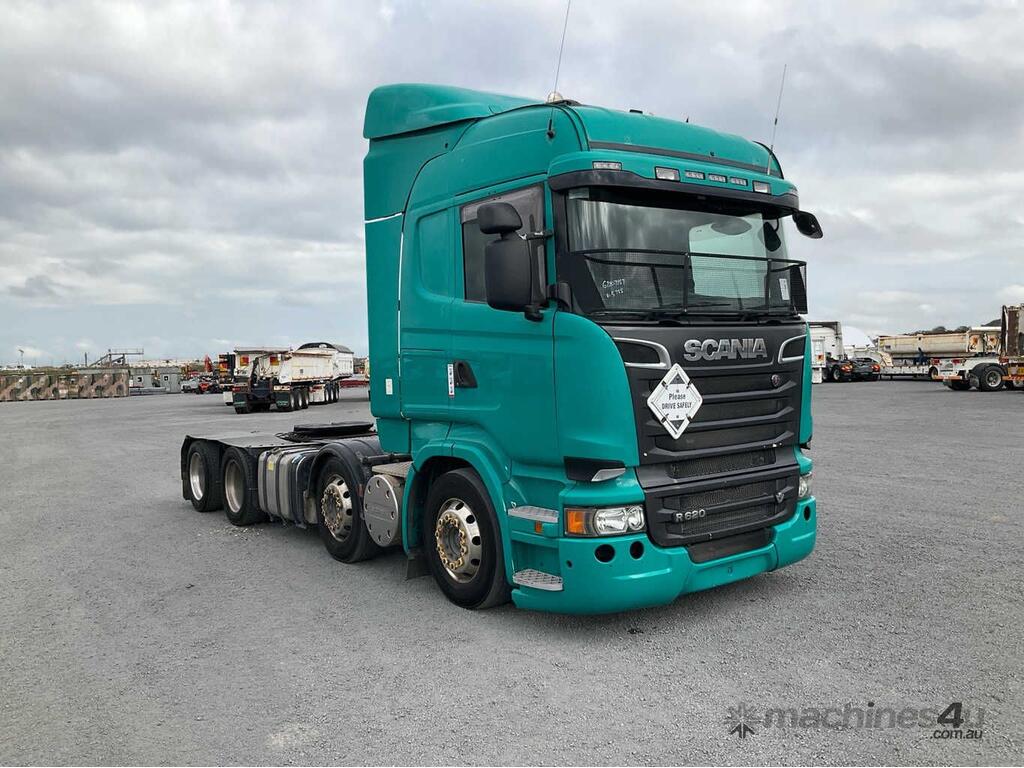CP: 12/2015,Scania,R620,Prime Mover Sleeper Cab,Automatic,Airbags,8 Cyl,Diesel Turbo,658620 (Kms. Showing on Odometer),19836 (Hrs. Showing on Hour meter),Colour: Green,Unregistered NSW,VIN: YS2R8X9,Key No: 578S,Length: 8.4 m,GVM: 35200,GCM: 92000,Sold with No Plates,Key No: 578S