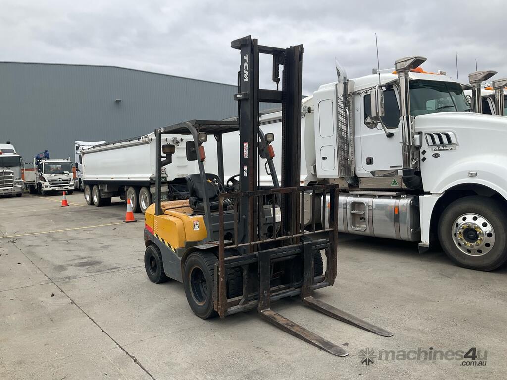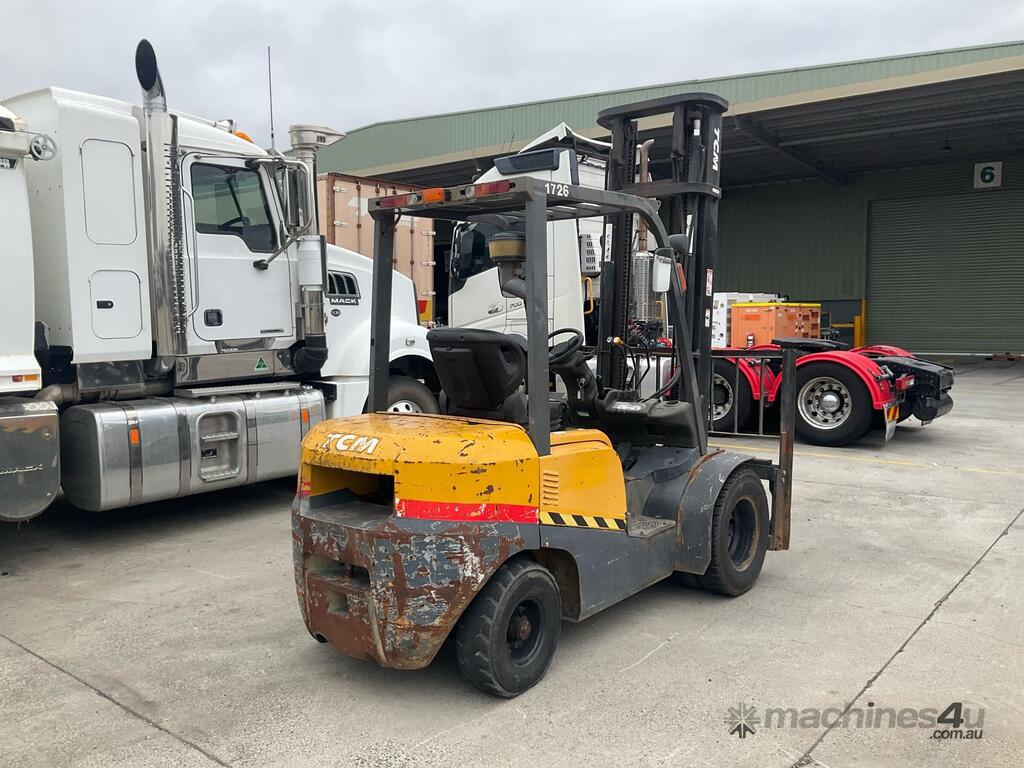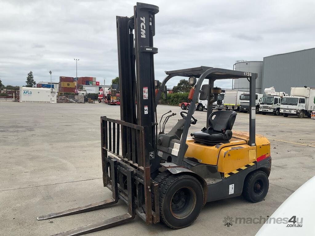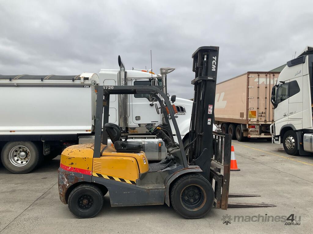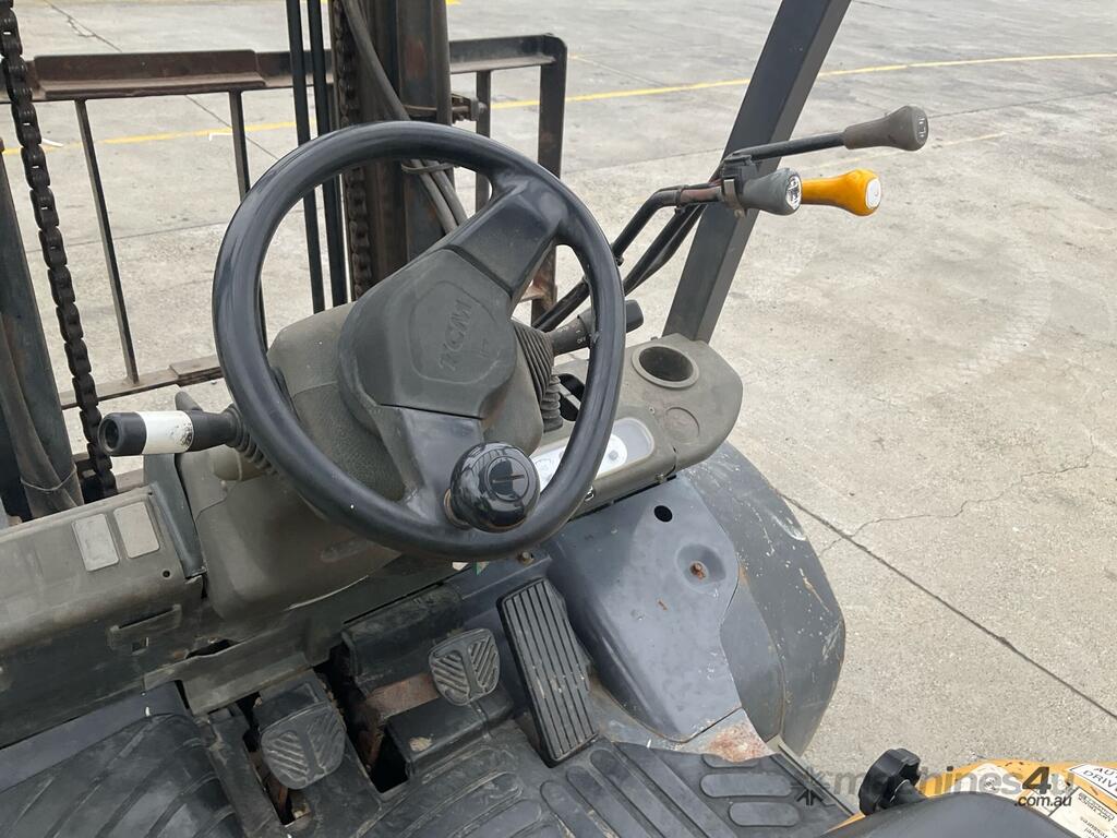 CP: CIRCA 2015,TCM,FD30T,Forklift,4 Cyl,Diesel,Odometer not visible,7398 (Hrs. Showing on Hour meter),Colour: Yellow,Unregistered,Serial No: 2N906084,Sold with No Plates,Key No: 21