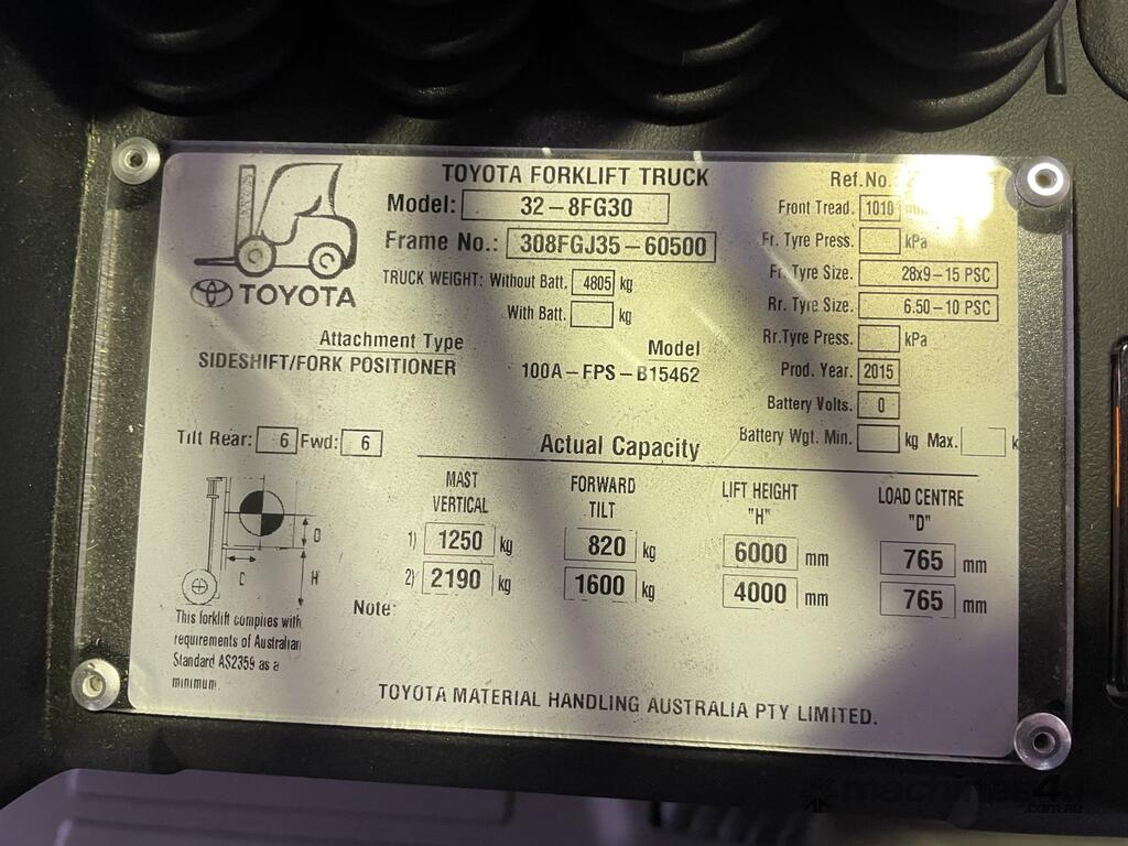 2015 TOYOTA 32-8FG30 6000mm 3 STAGE MAST FULL FORK POSITIONER