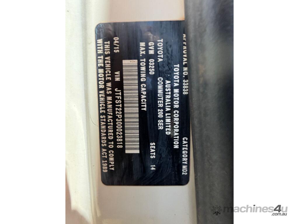 2015 Toyota KDH223R HiAce 3 Bus 4sp Auto 3.0L 3000cc 4cyl T/Diesel 2014