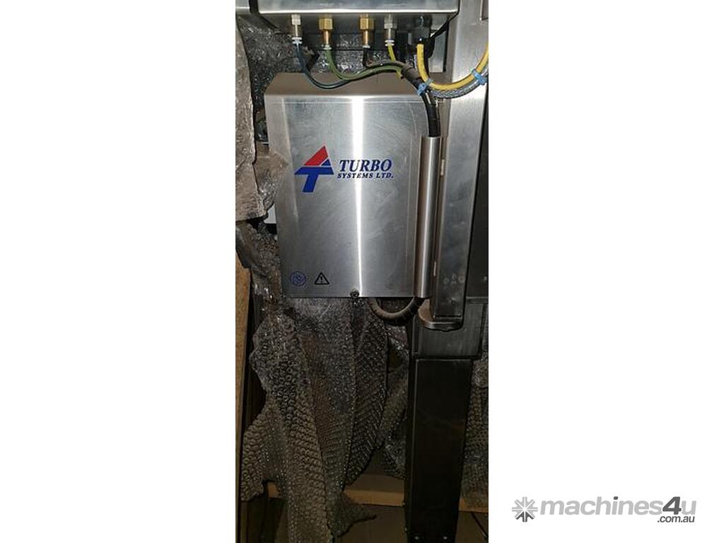 Unused Turbo Systems Single Head Piston Filler, complete and set up ready to go, on stand with castors and Mitsubishi PLC is a bargain and cost originally $70-80,000 AUD
