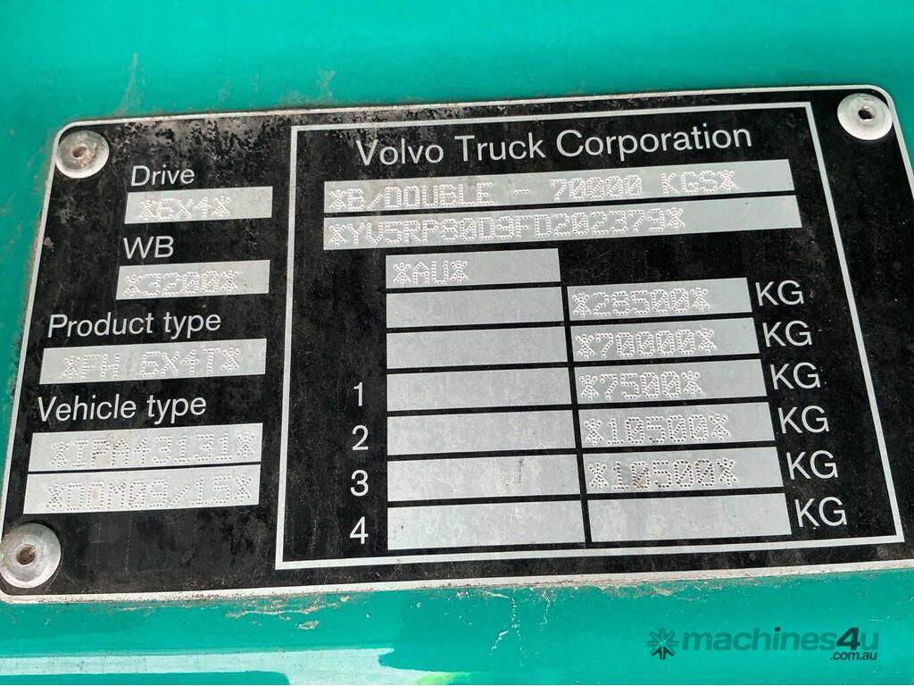 CP: 09/2015,Volvo,FH16,Prime Mover Sleeper Cab,Automatic,Airbags ,Engine #: D16090126,Euro 5,6 Cyl,Diesel Turbo,1317362 (Kms. Showing on Odometer),Hourmeter not visible,Colour: Green,Rego. No: XP38MF NSW,Rego expiry: 26/03/2026,VIN: YV5RP80D9FD202379,Key No: 38S,Length: 7.1 m,GVM: 28500,GCM: 70000,Sold with No Plates,Key No: 38S