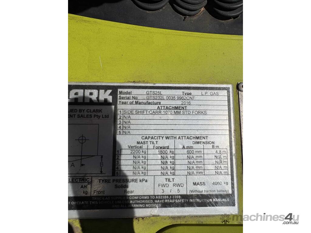 The 2016 2.5 Tonne Clarke GTS LPG Container Forklift delivers dependable mid-capacity lifting performance at an exceptional value price point. Designed for container work and general warehouse operations, this unit combines practical handling features with strong LPG-powered performance.