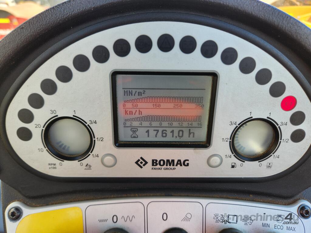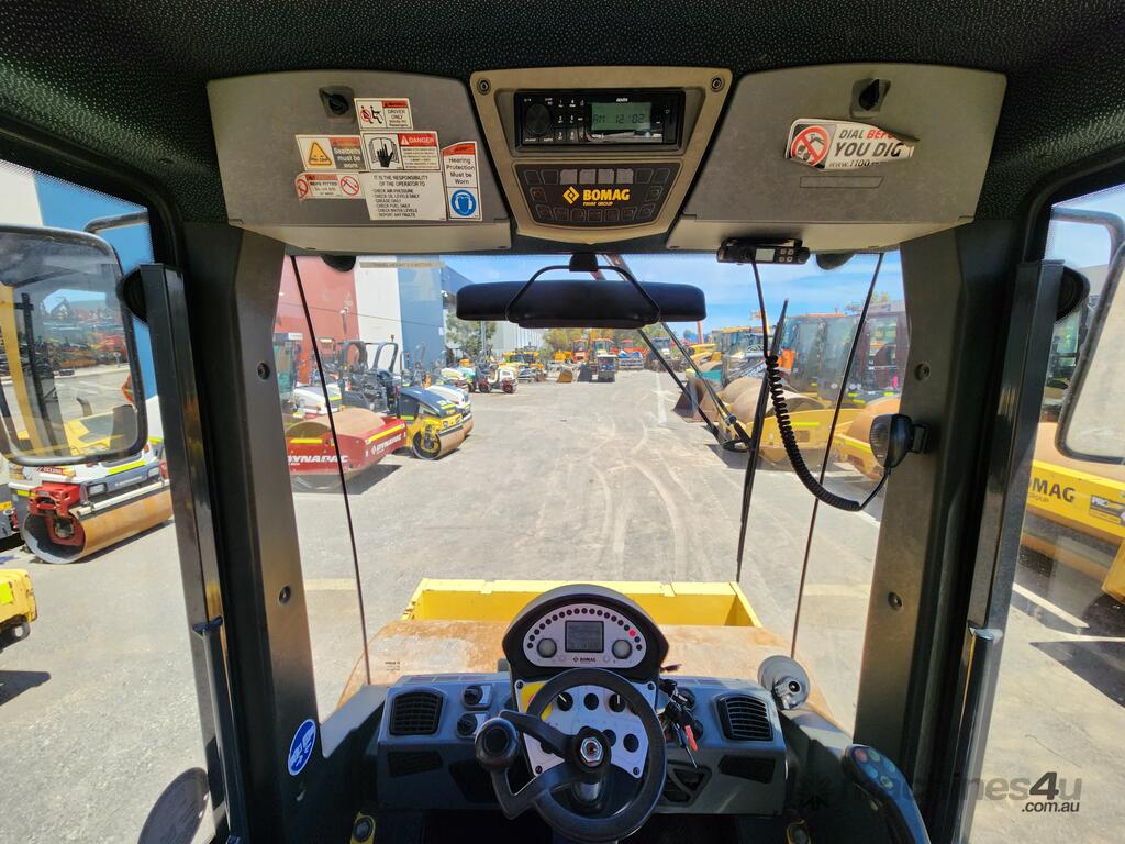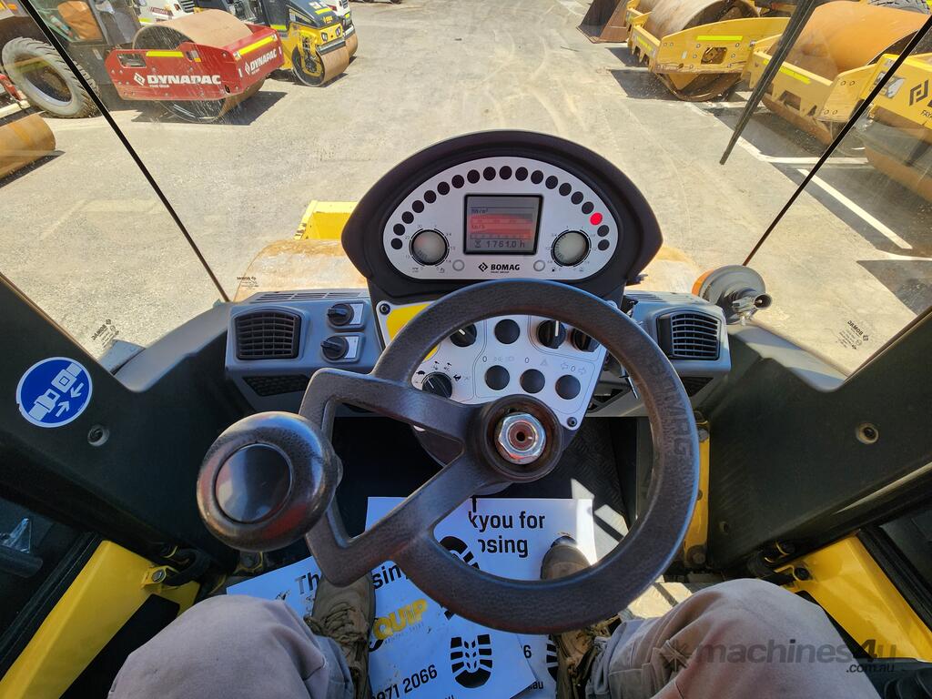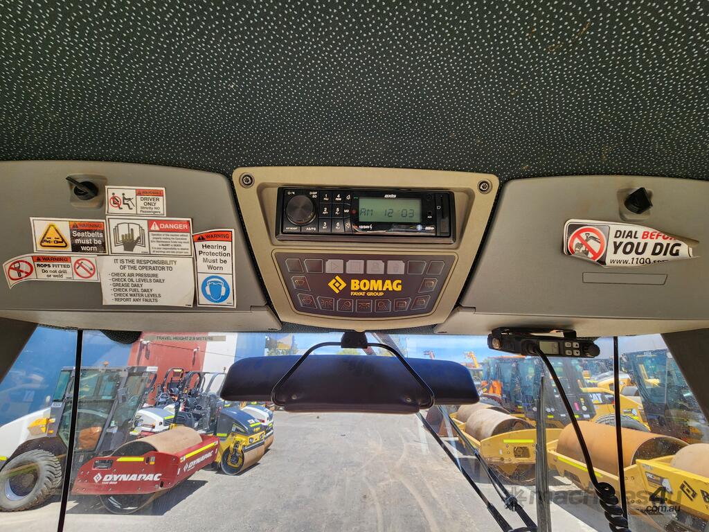 USED 2016 BOMAG BW177D-5 7t SMOOTH DRUM ROLLER WITH FULL A/C CABIN AND 1760 HOURS. FULL SERVICE HISTORY, TIER 1 CIVIL SPEC, UHF RADIO, E-STOPS, BATTERY ISOLATOR, REVERSING SQUAWKER, DUAL FREQUENCY AND AMPLITUDE VIBRATION SYSTEM, ADJUSTABLE SEAT AND WORK LIGHTS.