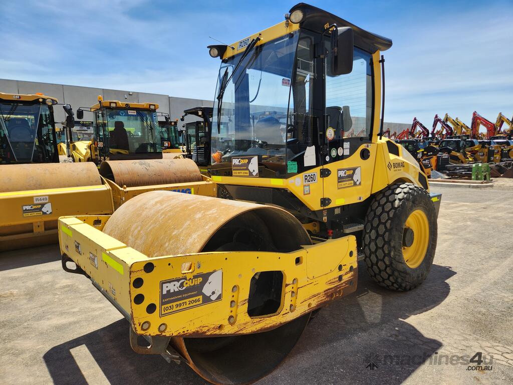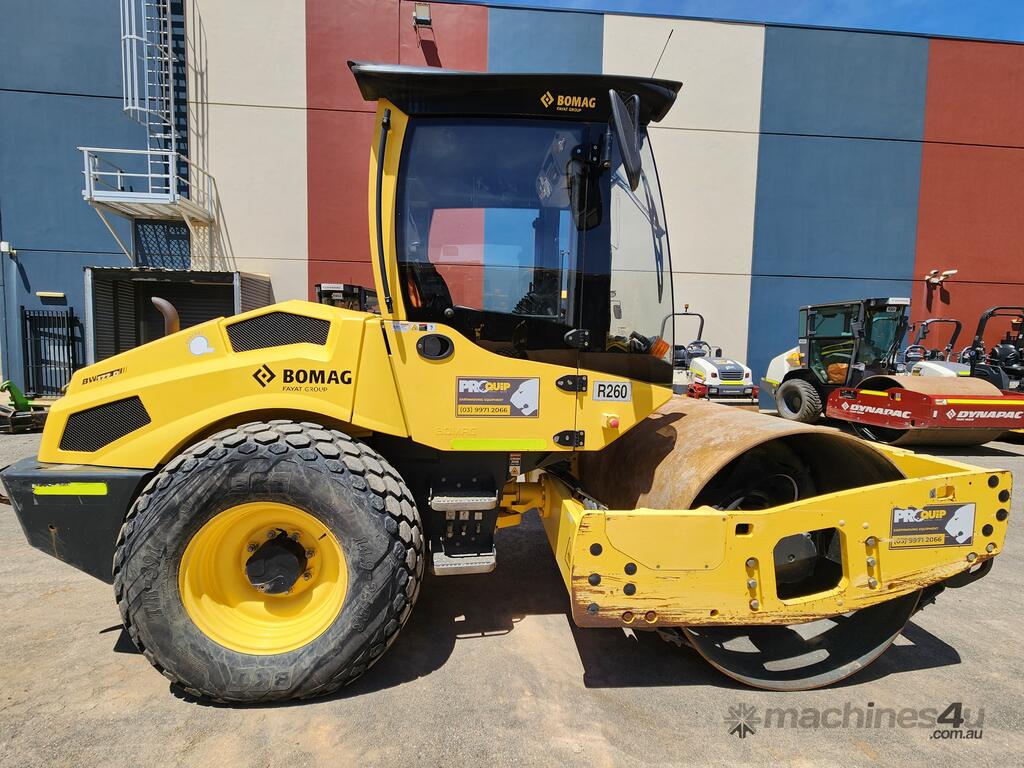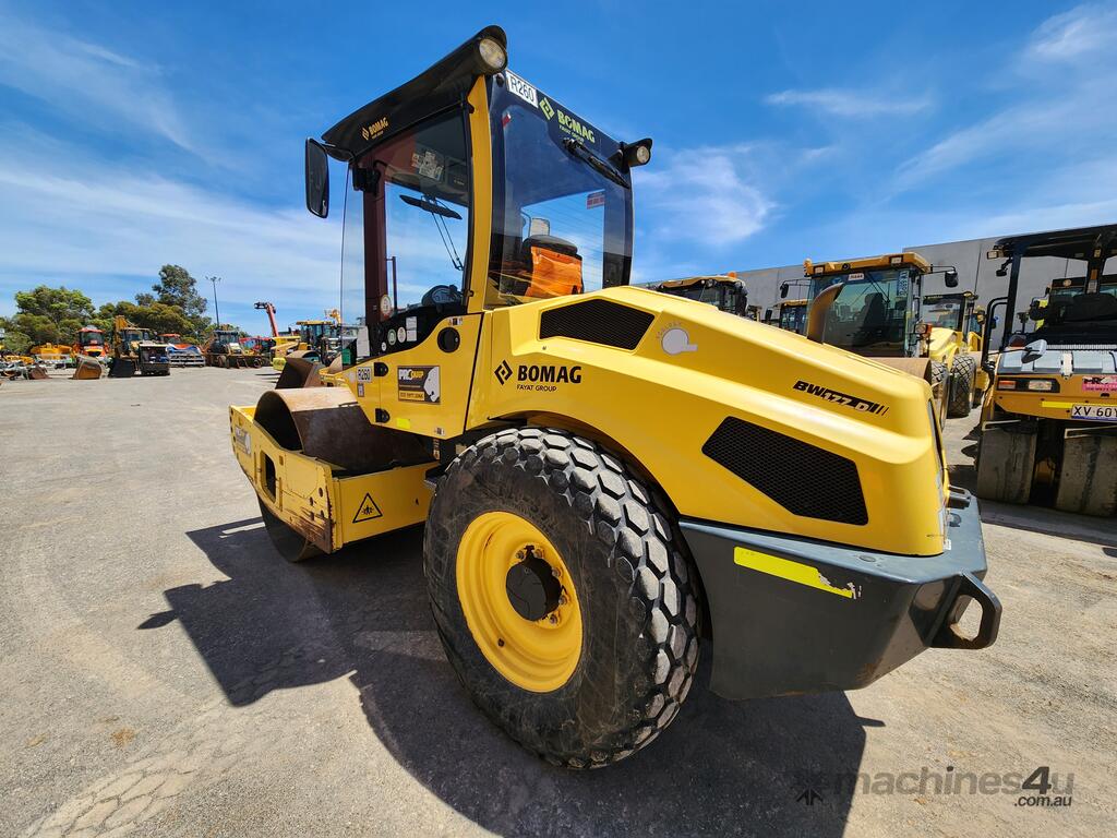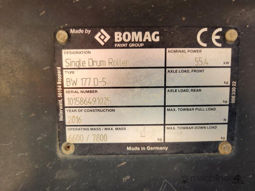 USED 2016 BOMAG BW177D-5 7t SMOOTH DRUM ROLLER WITH FULL A/C CABIN AND 1760 HOURS. FULL SERVICE HISTORY, TIER 1 CIVIL SPEC, UHF RADIO, E-STOPS, BATTERY ISOLATOR, REVERSING SQUAWKER, DUAL FREQUENCY AND AMPLITUDE VIBRATION SYSTEM, ADJUSTABLE SEAT AND WORK LIGHTS.