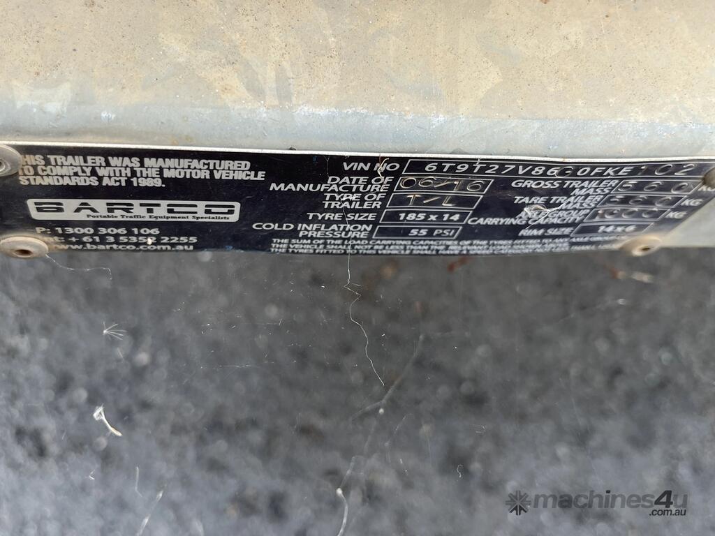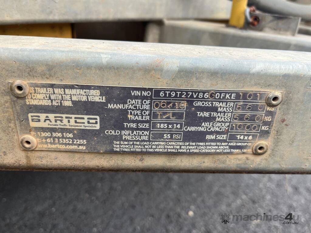 No C/P,Built: 06/2016,Bartco,T-L,Single Axle Traffic Light Trailer Combination,0 (undefined),Colour: Yellow,Unregistered WA,VIN: 6T9T27V86G0FKE101,Sold with No Plates