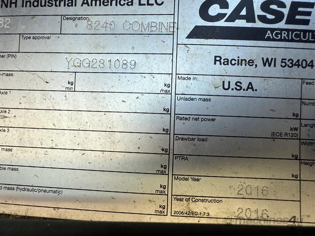 2016 Case IH 8240. 4196 engine hours, 3118 rotor hours. Full pre season last year. 80 hours on rotor gear box, rotor coupler, feeder hourse rebuild, new mickey mouse box, chopper bearings, rotor hear box, wiring replaced, shaker box bearings. Header has GPS & Steering. Tuned to a class 9, has blow down system. Located near Moree NSW.