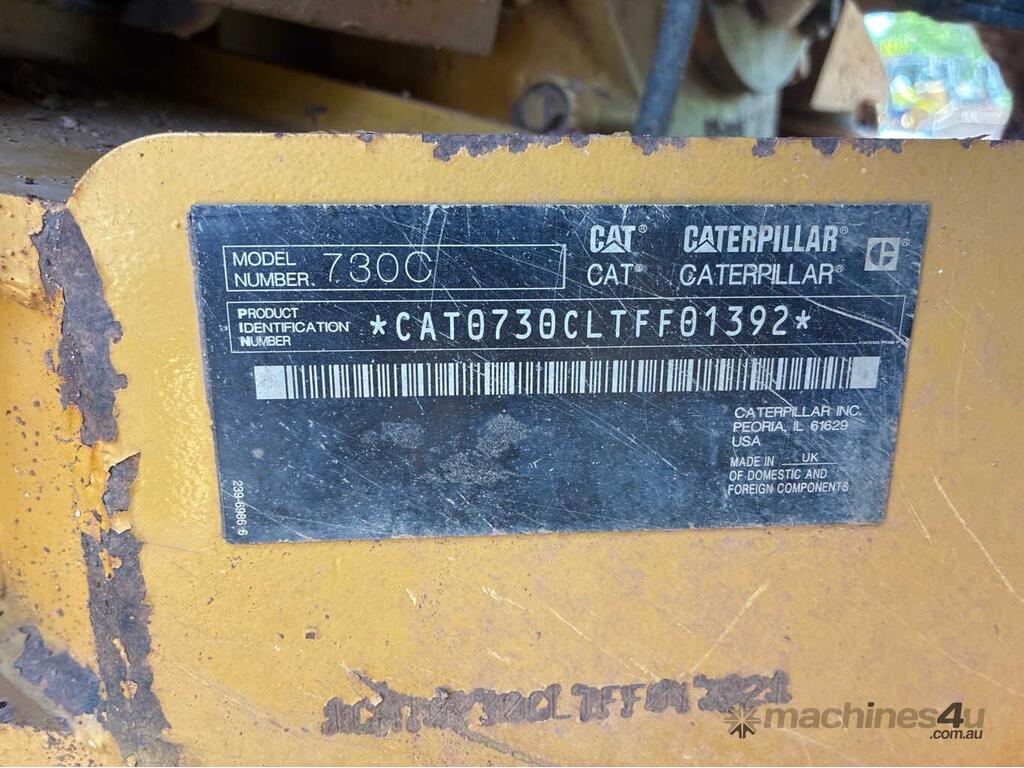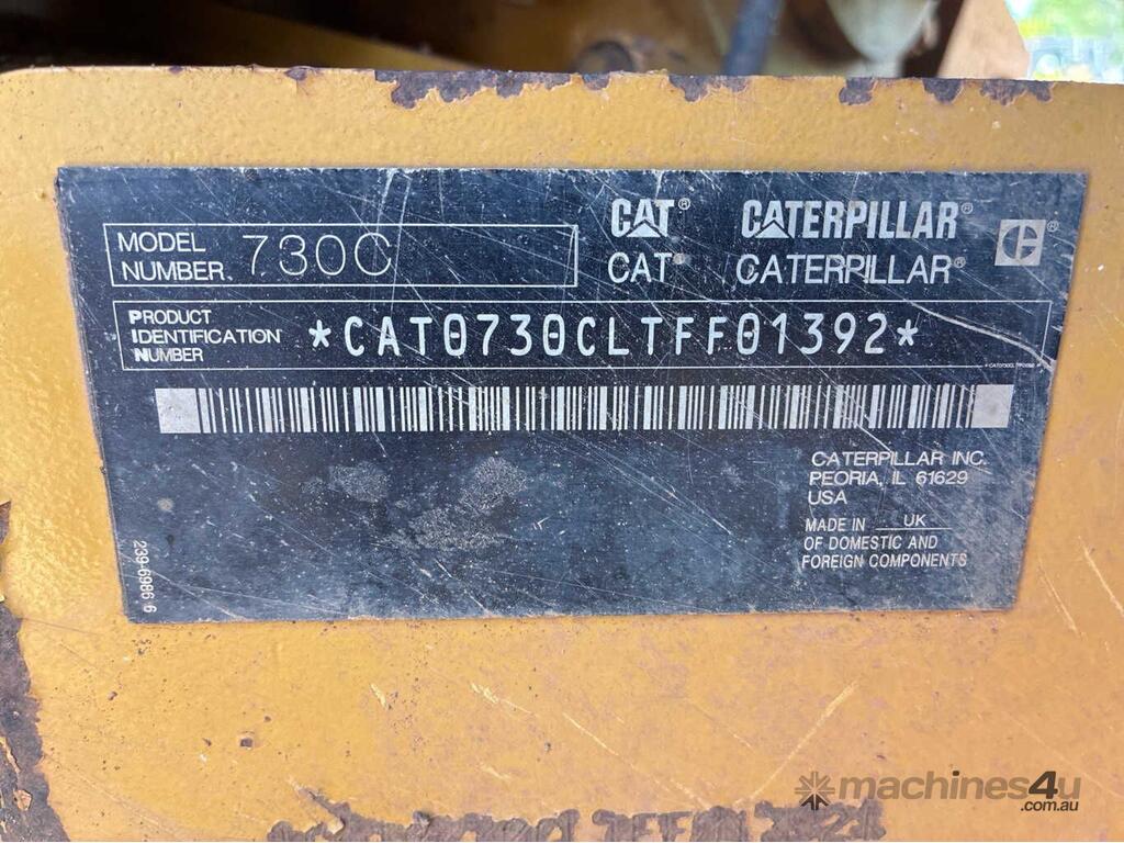CP: CIRCA 2016,Built: 02/2016,Caterpillar,730C,6x6 Articulated Dump Truck,6 Cyl,Diesel,Odometer not visible,10977 (Hrs. Showing on Hour meter),Colour: Yellow,Unregistered,VIN: CAT0730CLTFF01392,Serial No: TFF01392,Sold with No Plates